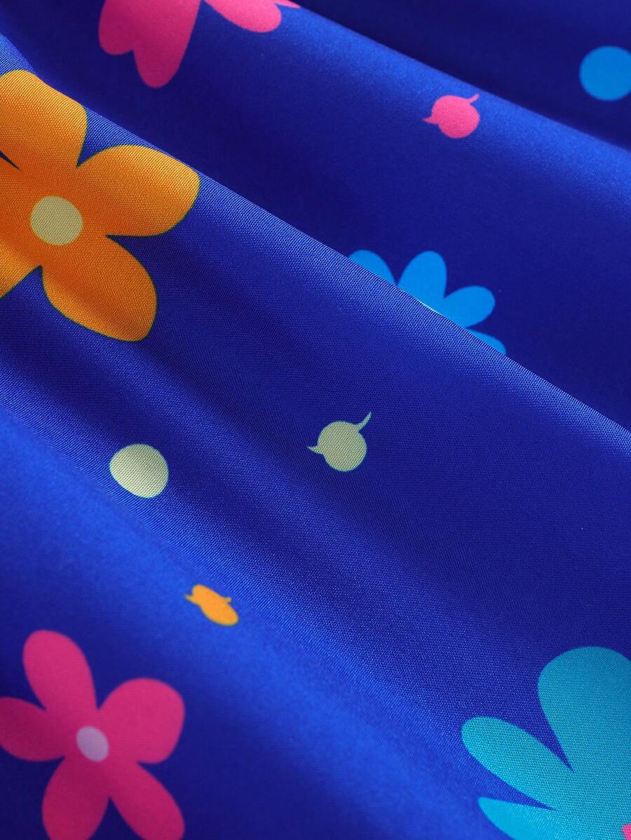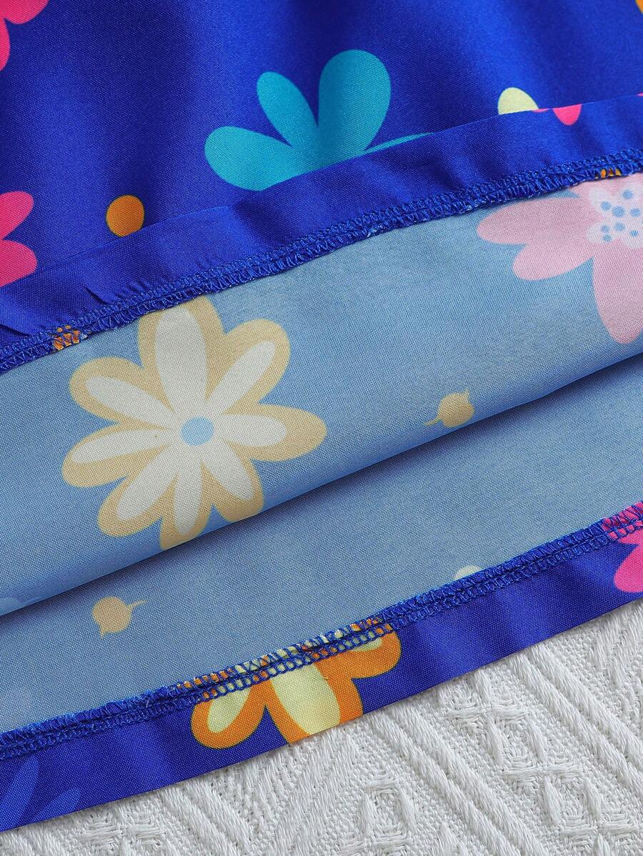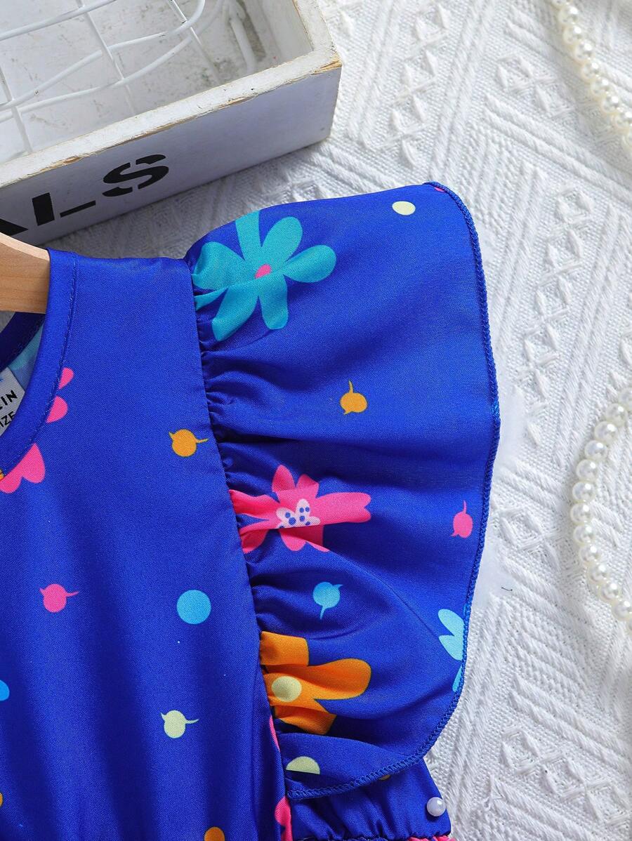SHEIN Kids SUNSHNE فستان بنات مزين بطبعات الزهور وحاشية مكشكشة للفتيات الصغيرات
