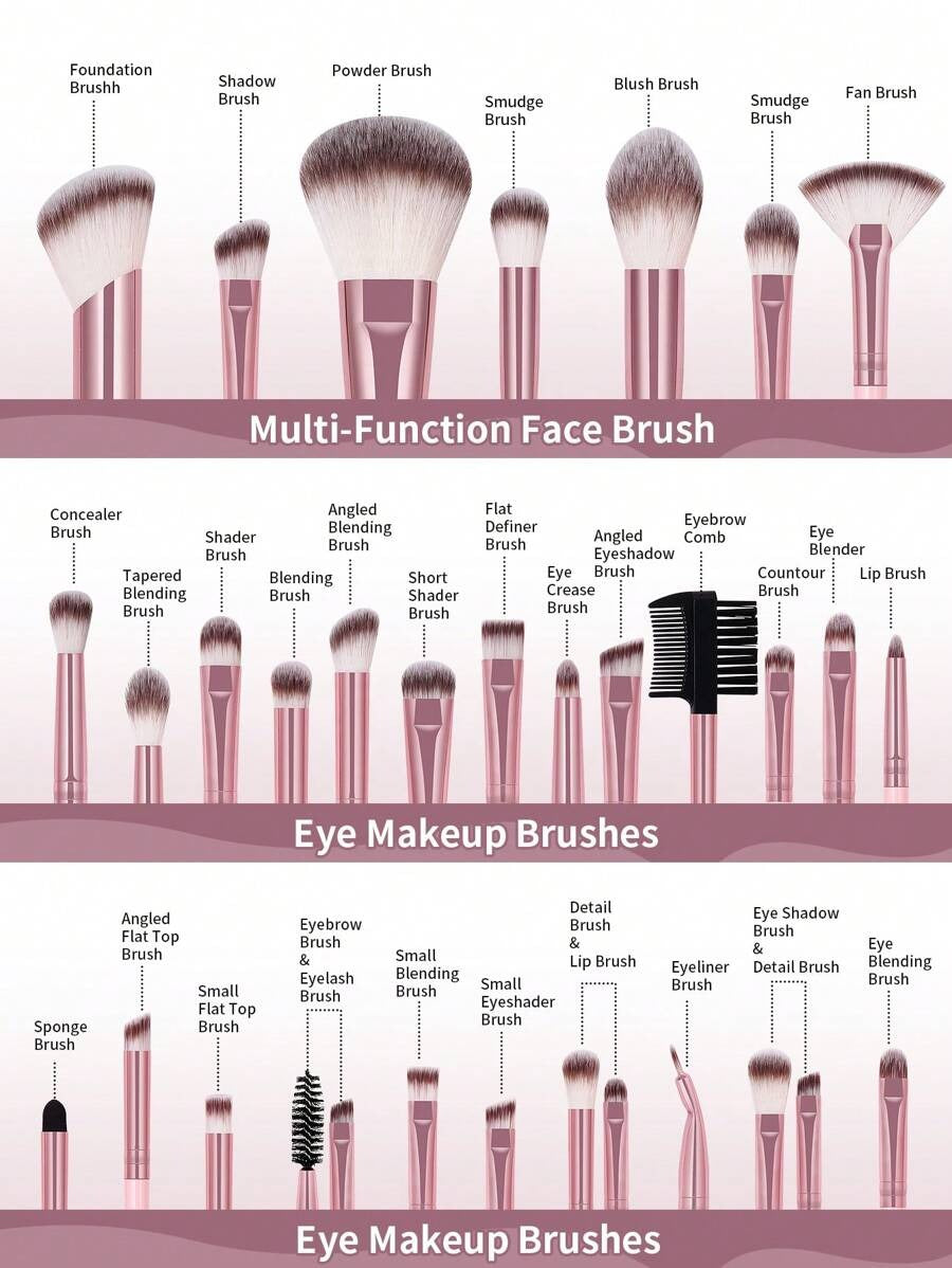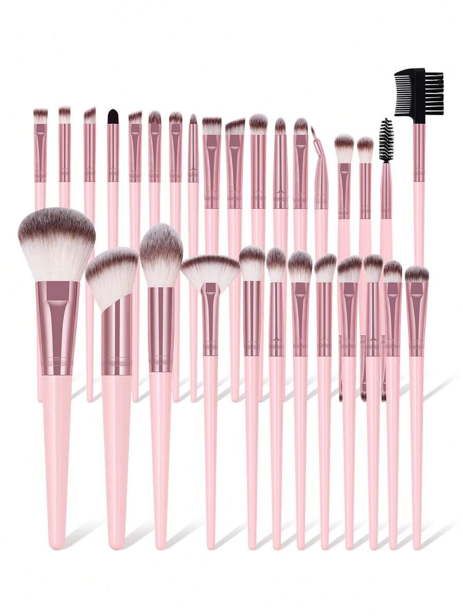 طقم فرش مكياج MAANGE – 26/30 قطعة بلون وردي ناعم 🎀✨