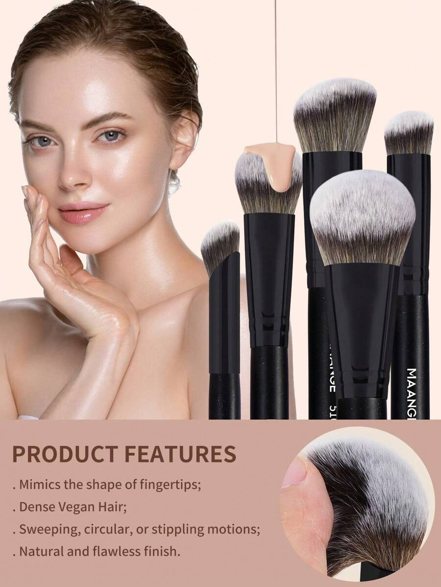 طقم 5 فرش وجه احترافية من MAANGE – تصميم أنيق وناعم للتحديد والمزج 🎯🖤