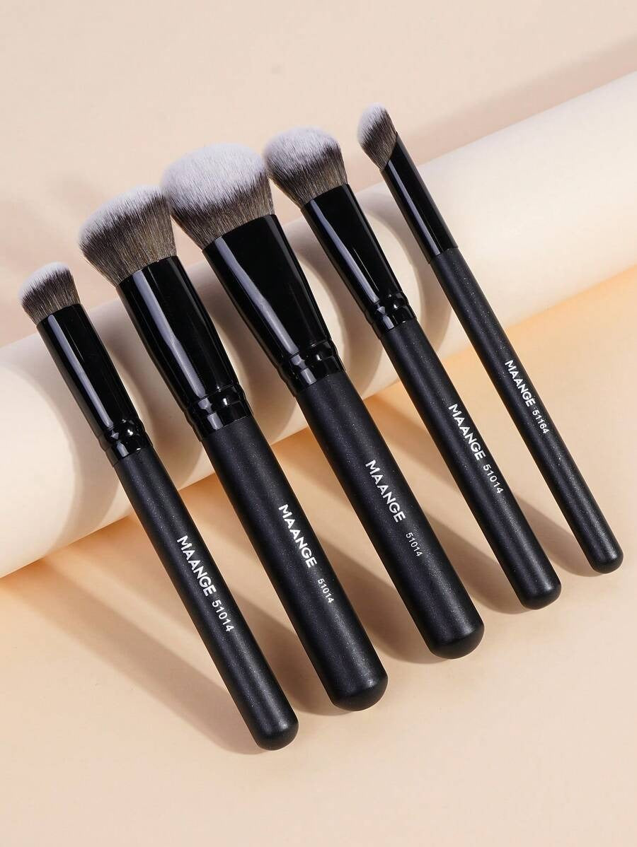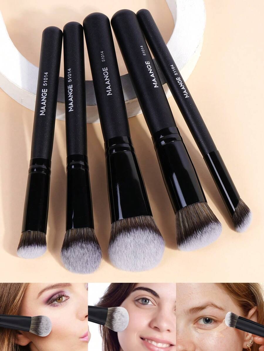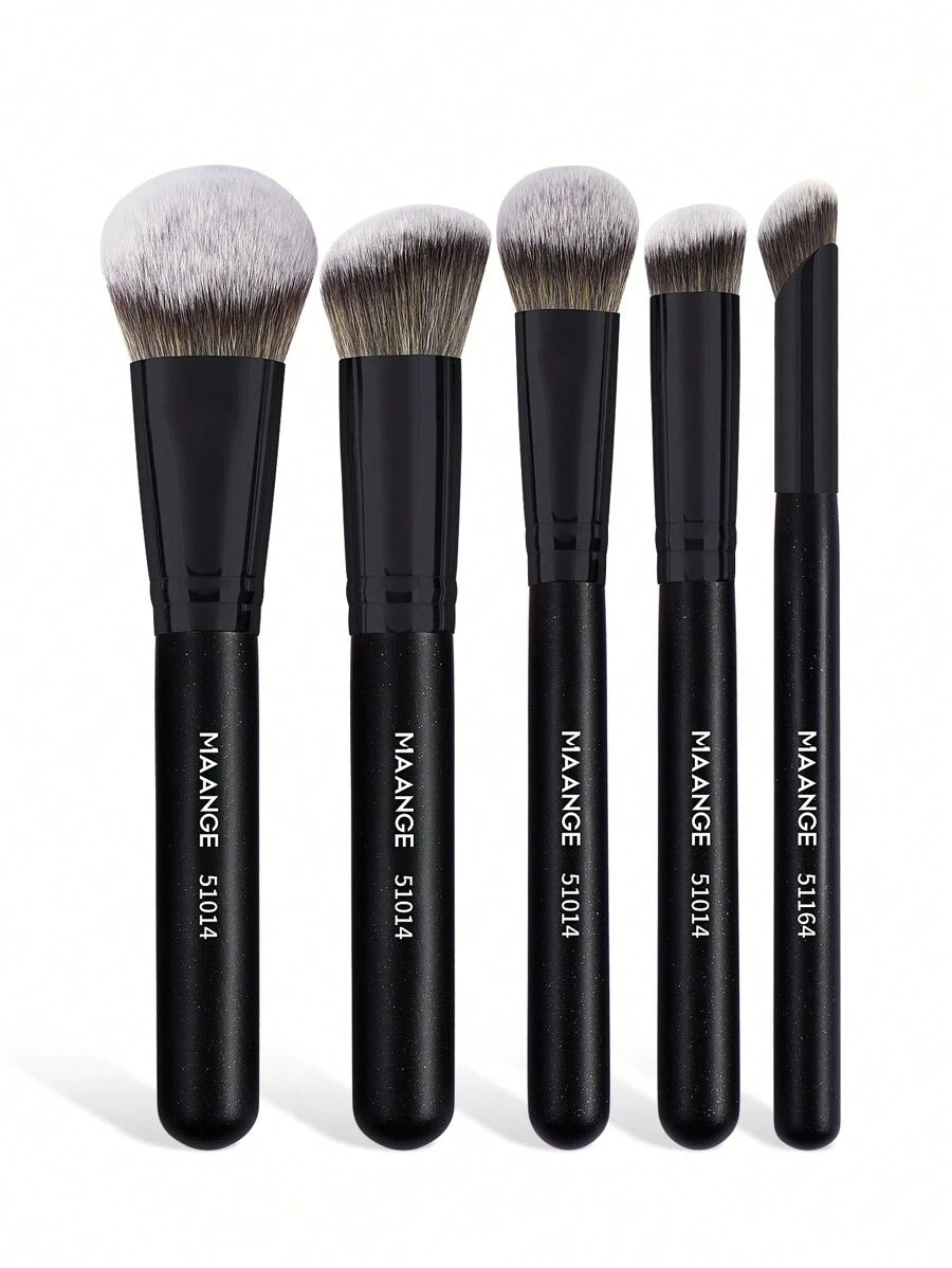 طقم 5 فرش وجه احترافية من MAANGE – تصميم أنيق وناعم للتحديد والمزج 🎯🖤