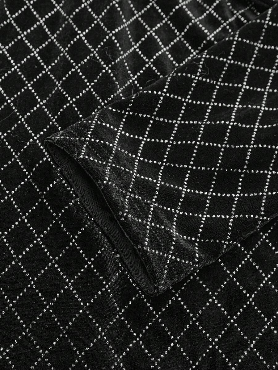 SHEIN Maija فستان مخمل أسود بتصميم مربعات بأكمام طويلة