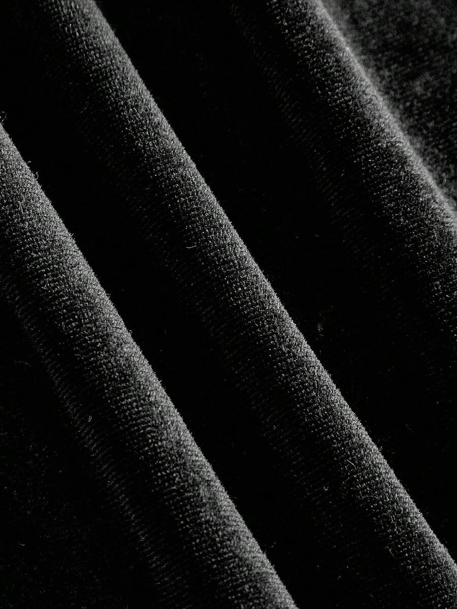 تنورة فاخرة بتصميم راقٍ وغير متماثل من خامة المخمل الناعمة، مزينة بإكسسوار دبوس أمامي أنيق يضيف لمسة فخامة مميزة. بقصة ذيل السمكة التي تبرز القوام بأنوثة وأناقة مثالية للحفلات والمناسبات الخاصة.