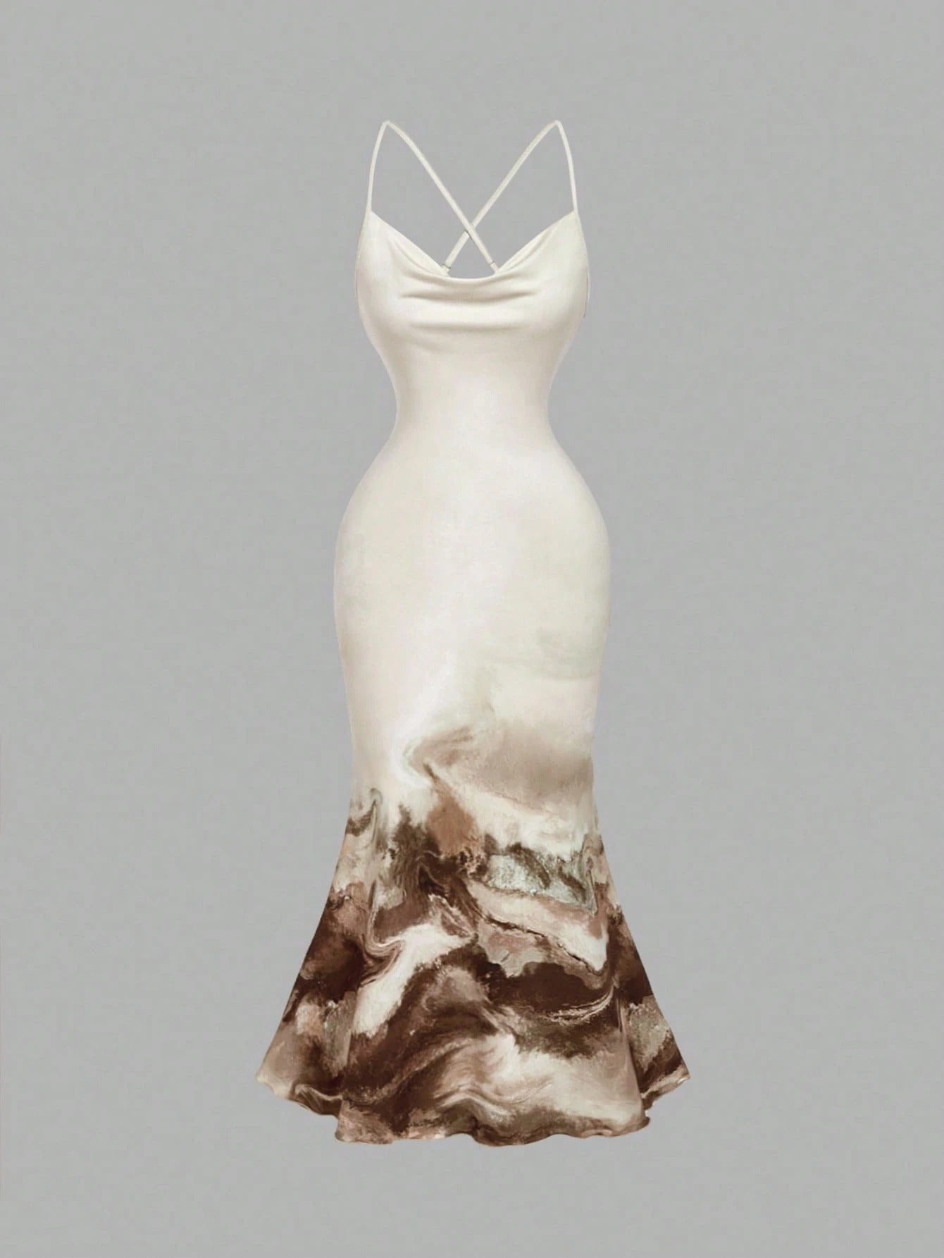 SHEIN MOD تنورة ضيقة ذيل سمكة بصبغة ربطة عنق ورقبة عميقة