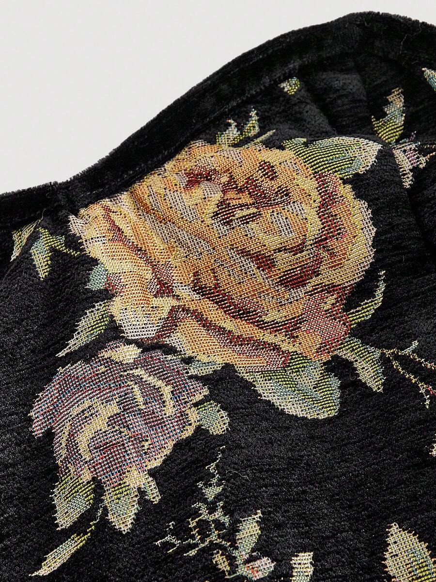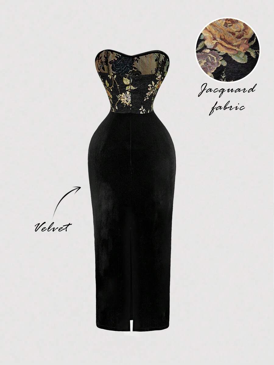 SHEIN MOD فستان أنبوبي أسود مزخرف بالأزهار