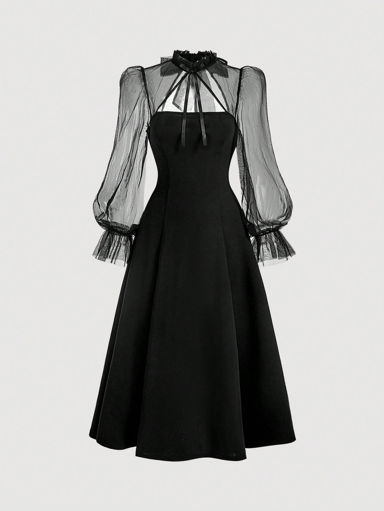 SHEIN MOD فستان طويل الأكمام بياقة عالية وشبك أنيق