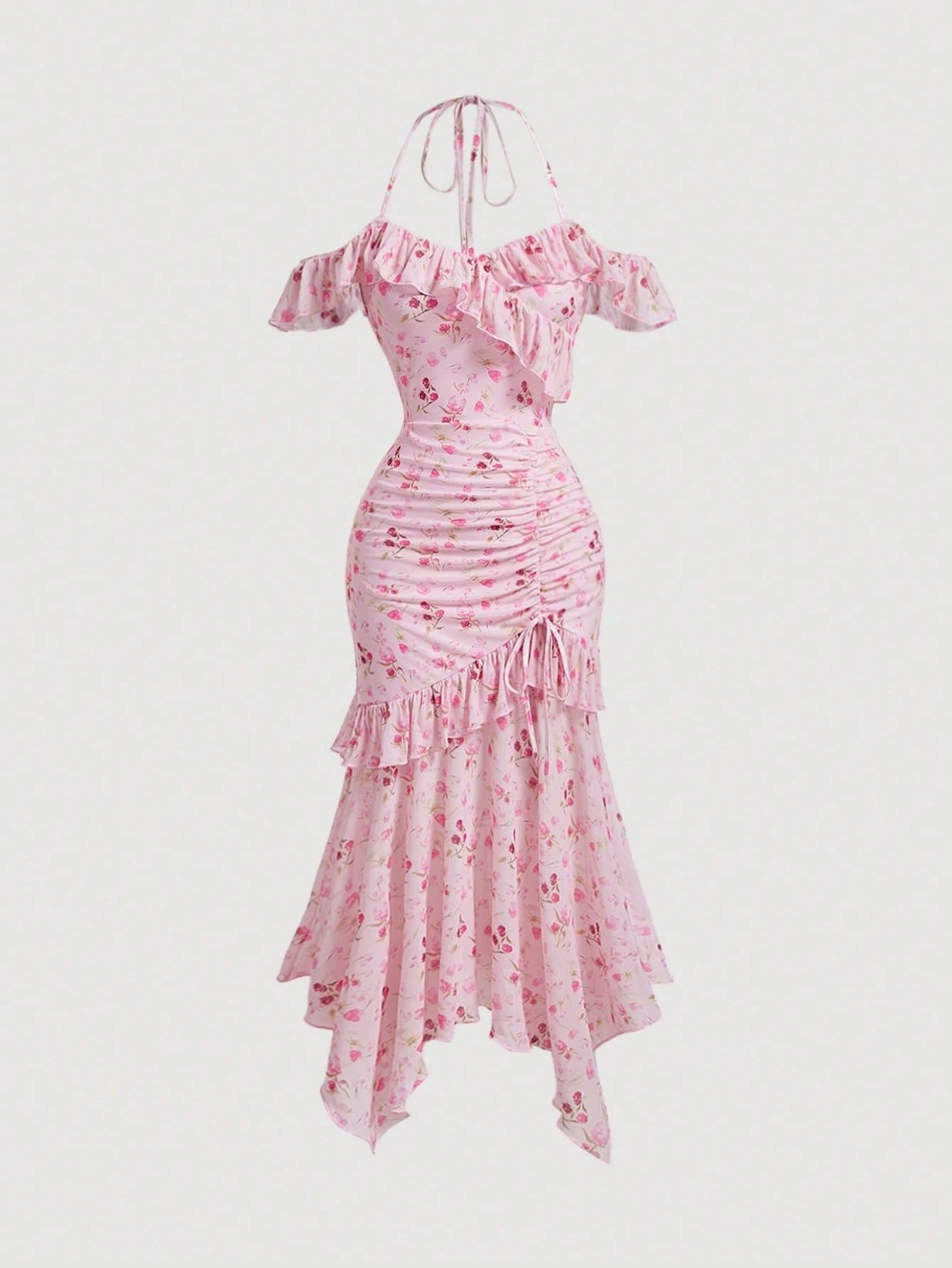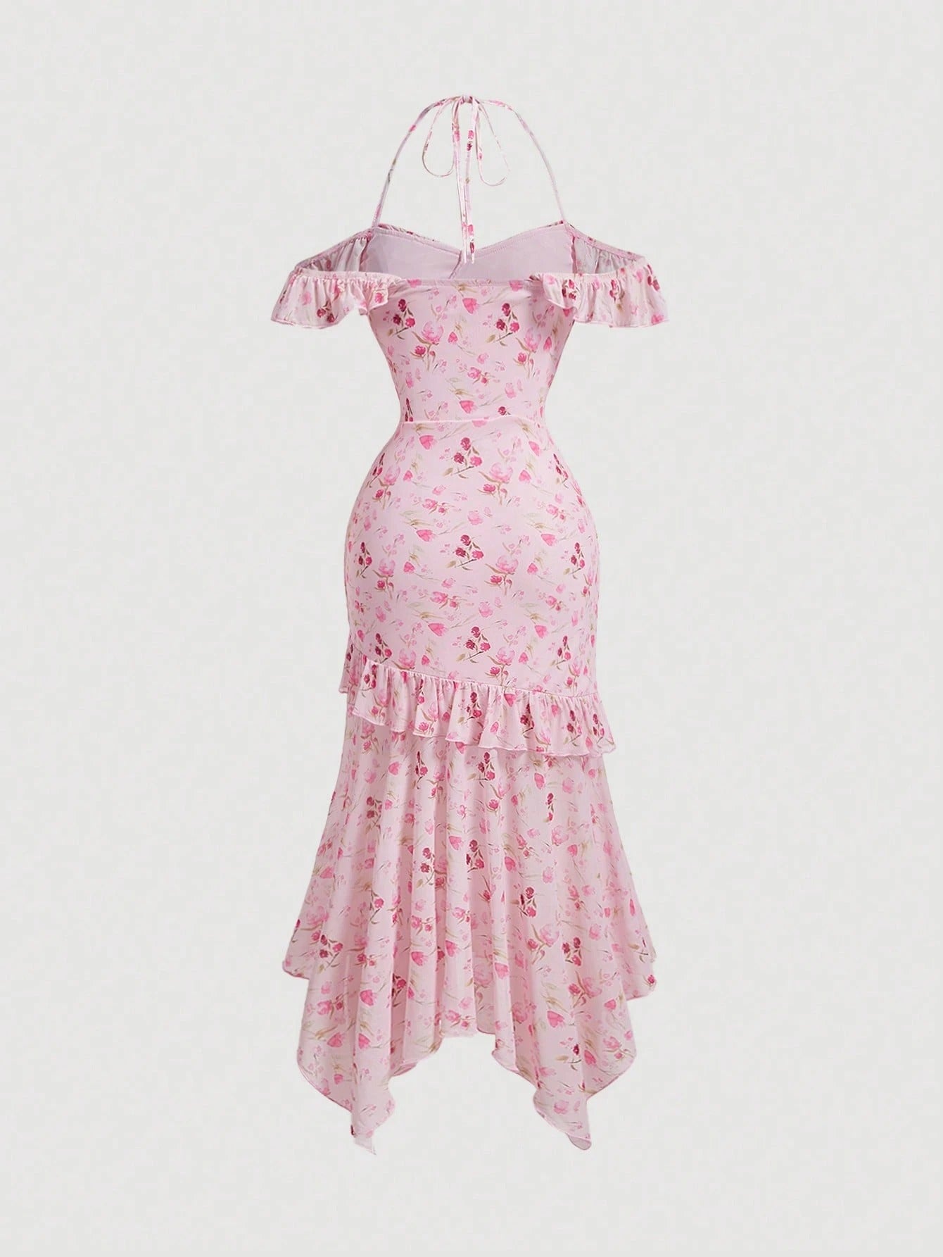 SHEIN MOD فستان طويل وردي مزخرف بالزهور للصيف