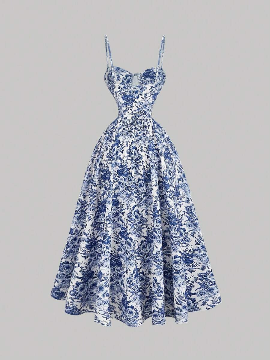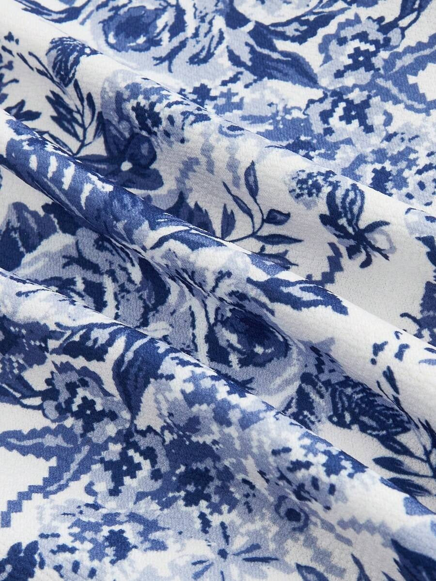💙 SHEIN MOD فستان كامي أزرق وأبيض بنمط مزهري أنيق