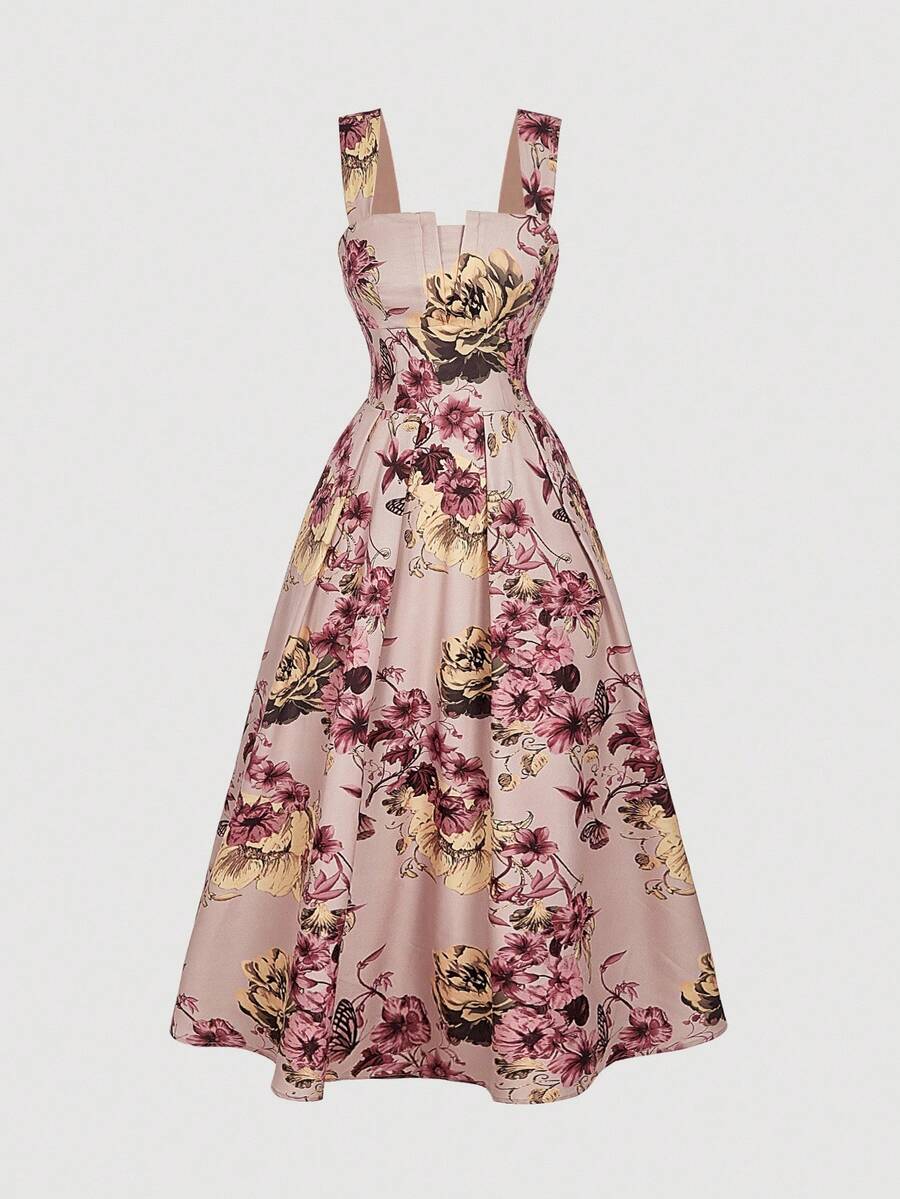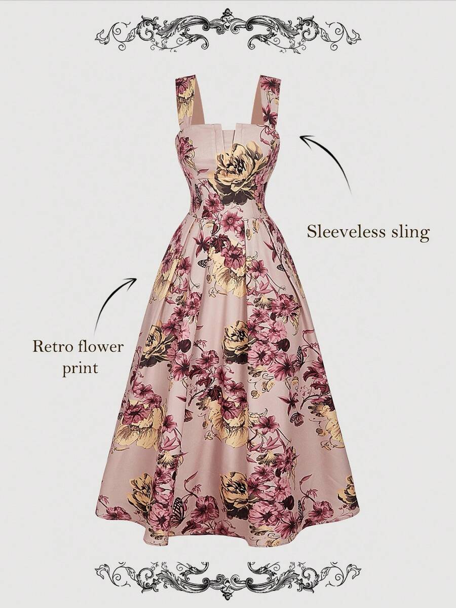 🌸 فستان متوسط الطول بطبعة زهور رومانسية