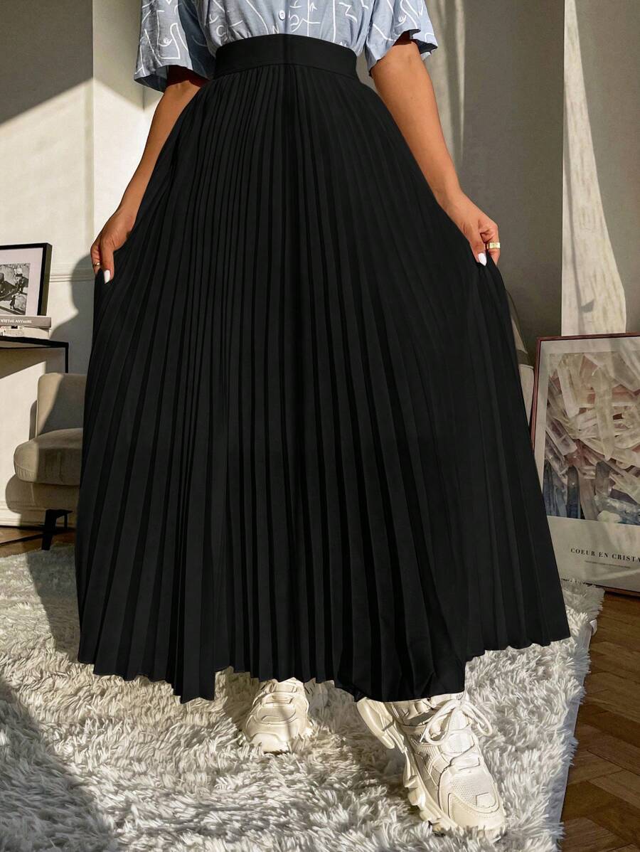 SHEIN Mulvari تنورة سوداء طويلة بطيات