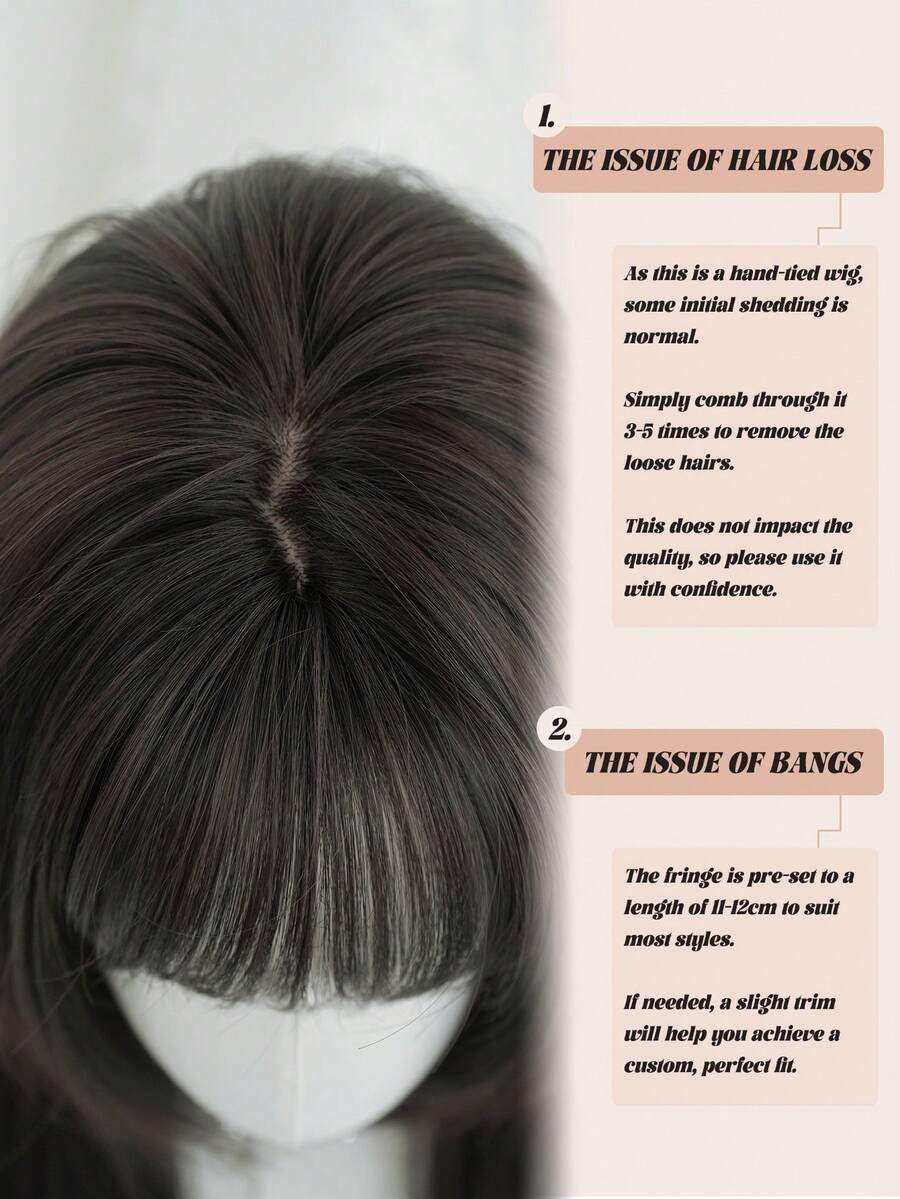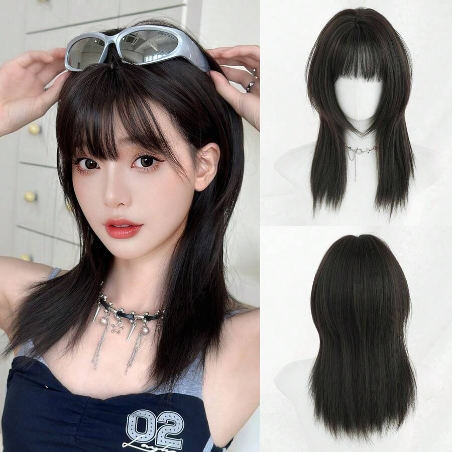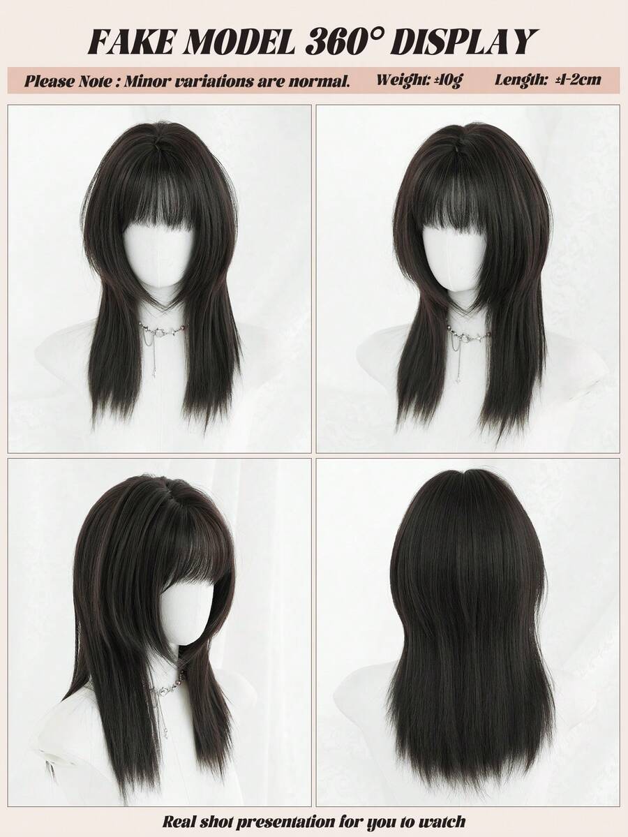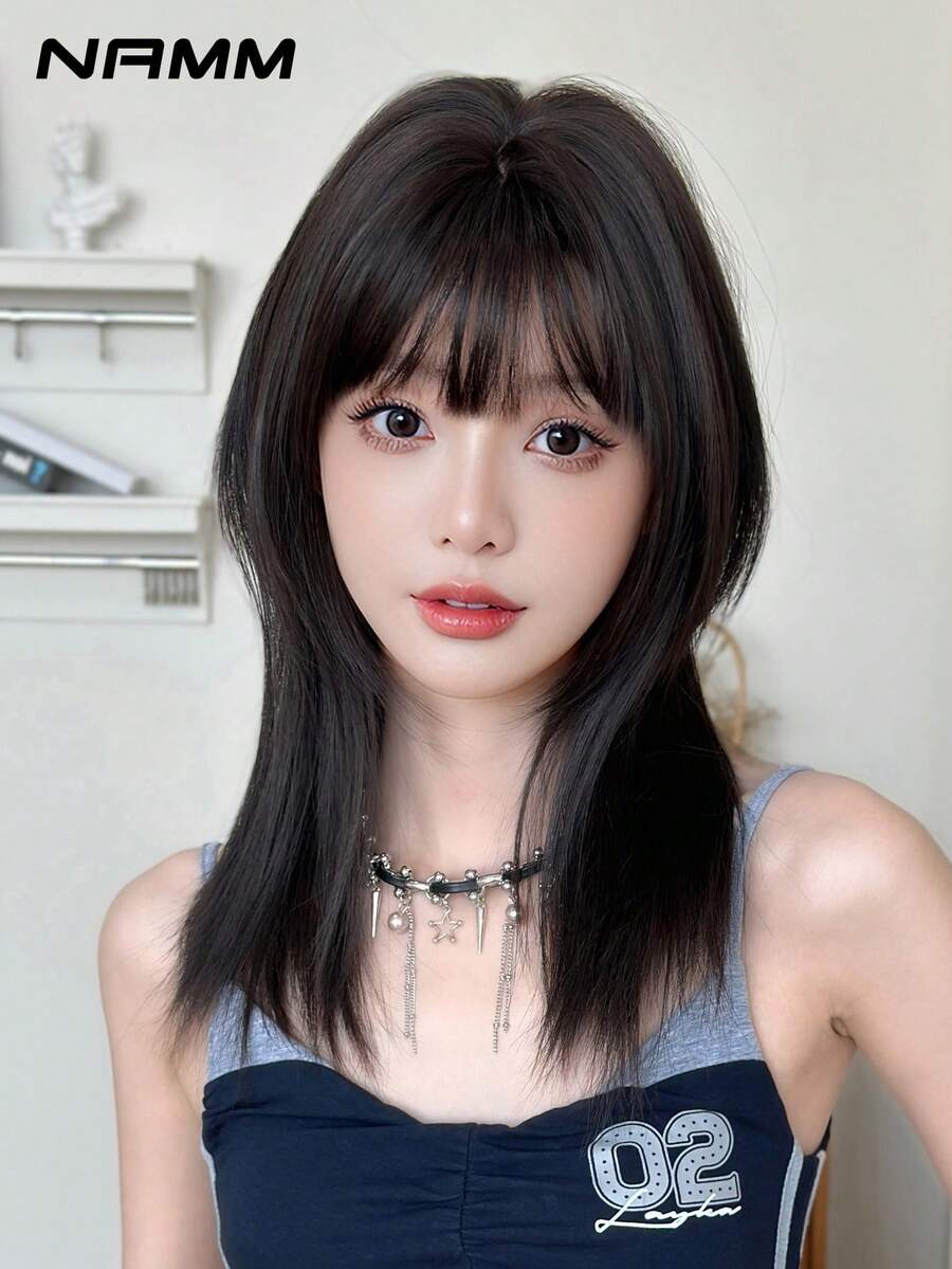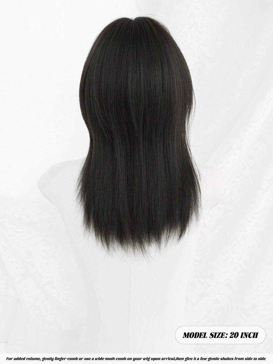 SHEIN NAMM باروكة سوداء 20 بوصة شعر مستقيم مع غرة