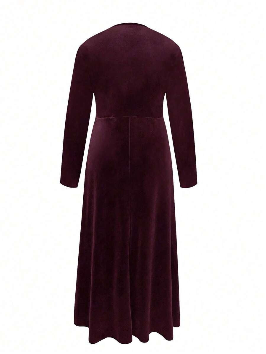 فستان كاجوال للمقاسات الكبيرة بياقة V وأكمام طويلة بلون أحمر بنفسجي 💃