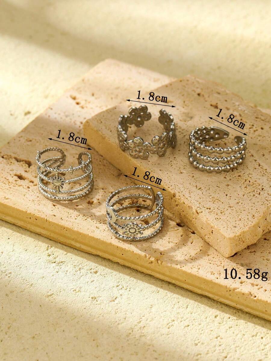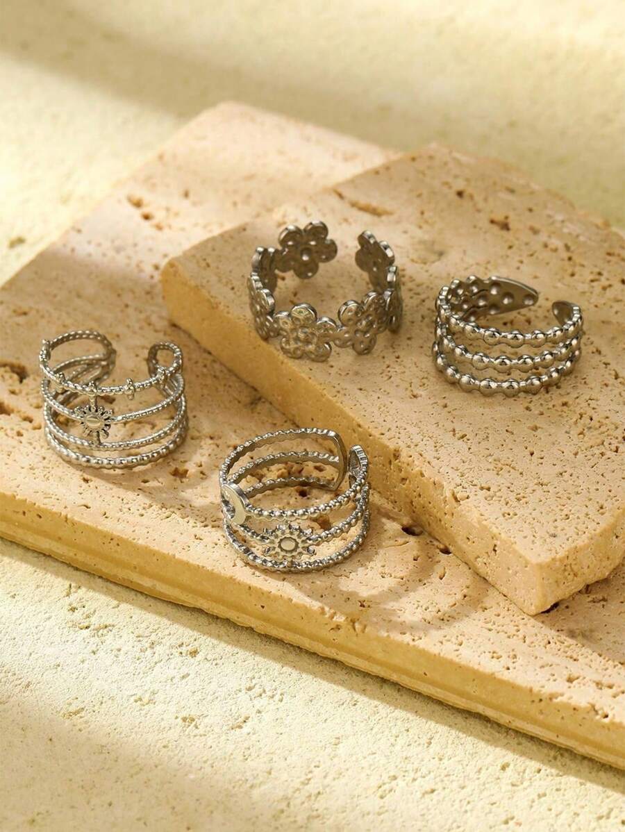 SHEIN quality طقم خواتم 4 قطع بتصميم زهور ونجوم وأقمار