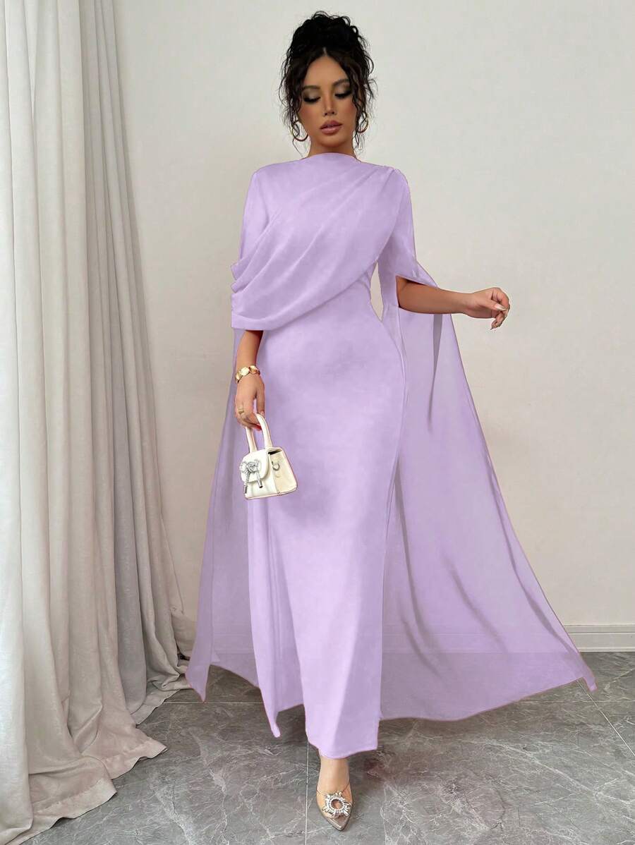فستان حفلات أرجواني بقصة أنثوية وكتف أسيمتري ✨