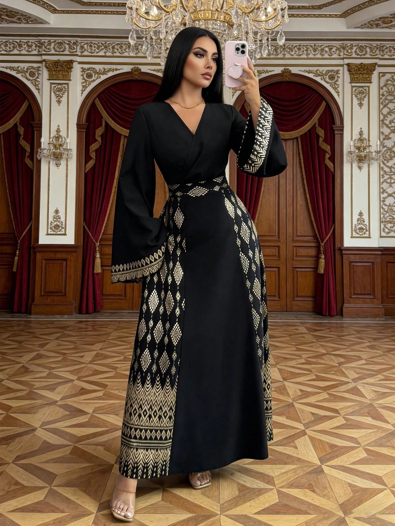 SHEIN Rafferiza فستان ماكسي شيفون بياقة مربعة وأكمام طويلة