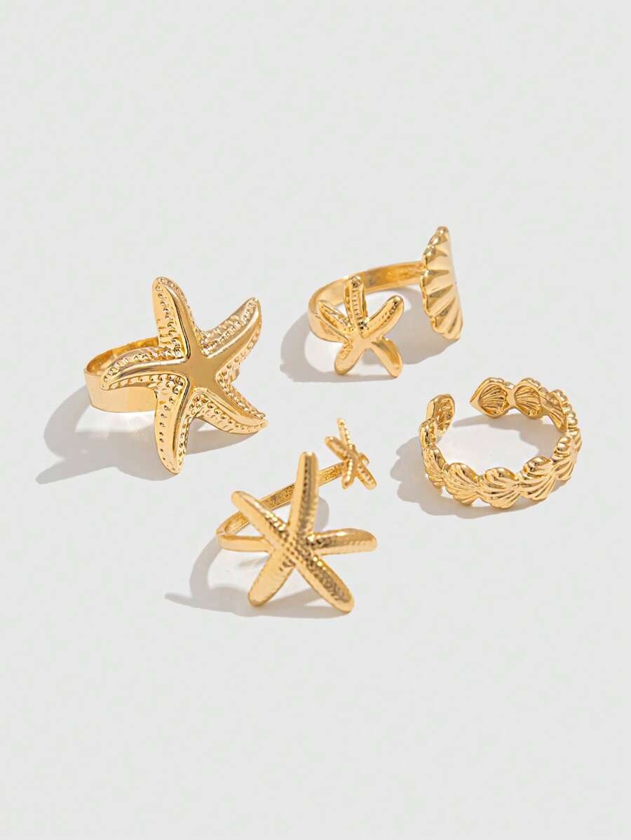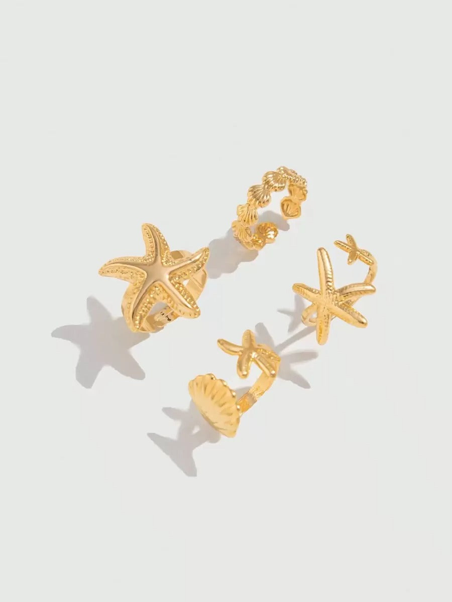 SHEIN ROMWE طقم 4 خواتم ذهبية بتصميم بحري