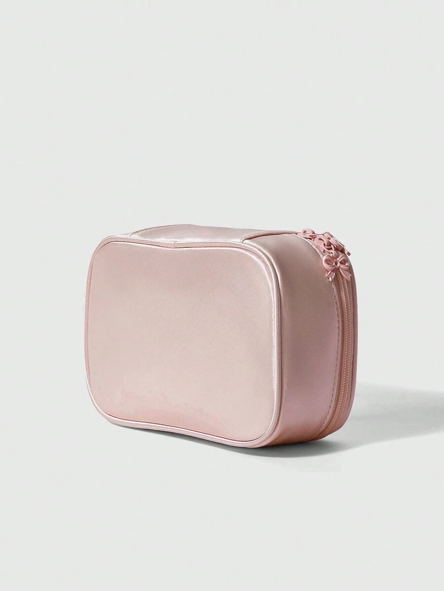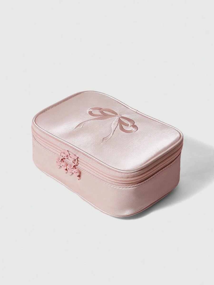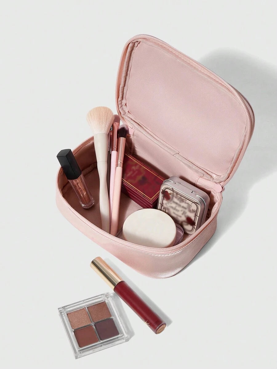 SHEIN ROMWE Kawaii حقيبة مكياج ساتان وردية مطرزة بشريطة