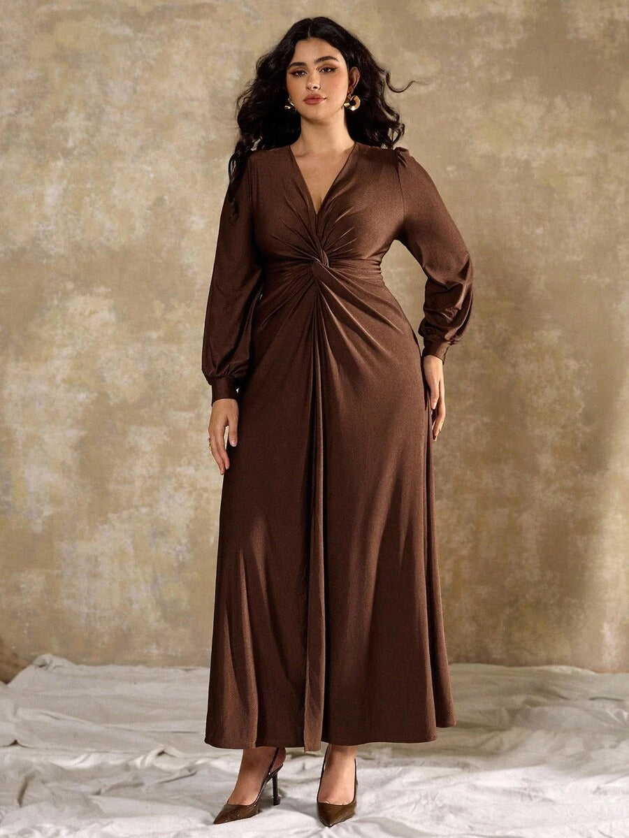 SHEIN Roveilla فستان بني ناعم بقصة فرنسية