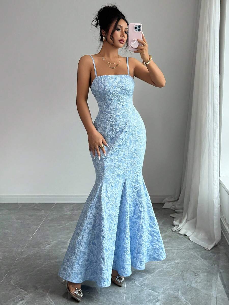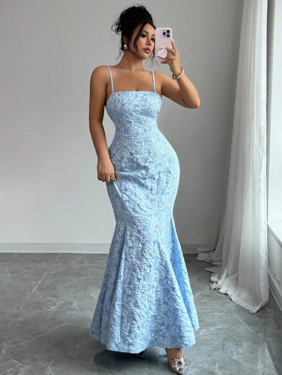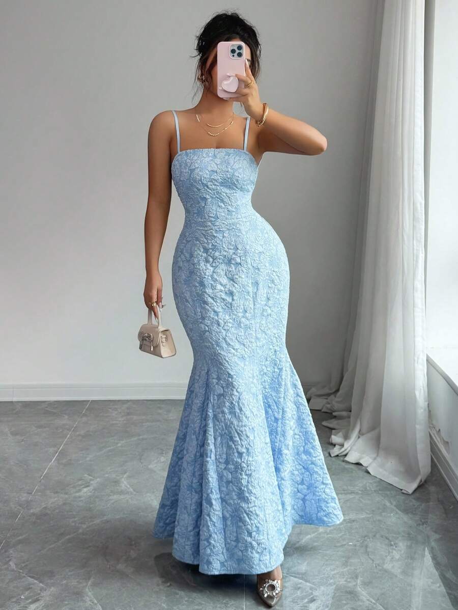 SHEIN Selianne فستان سهرة أطلس أزرق بحمالات متقاطعة