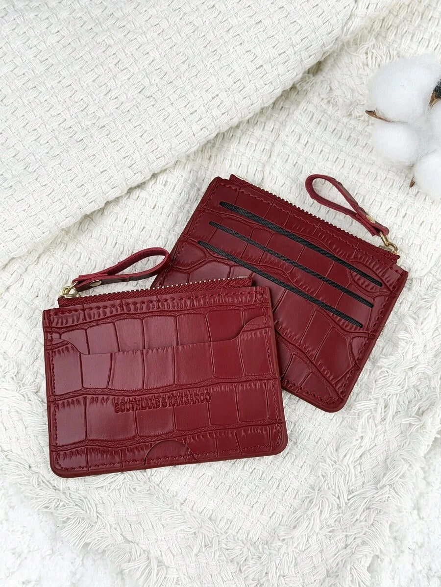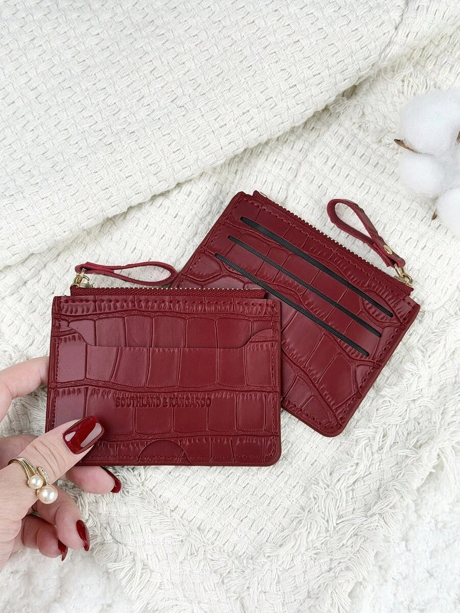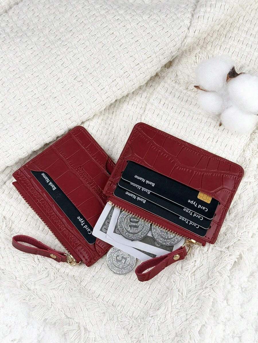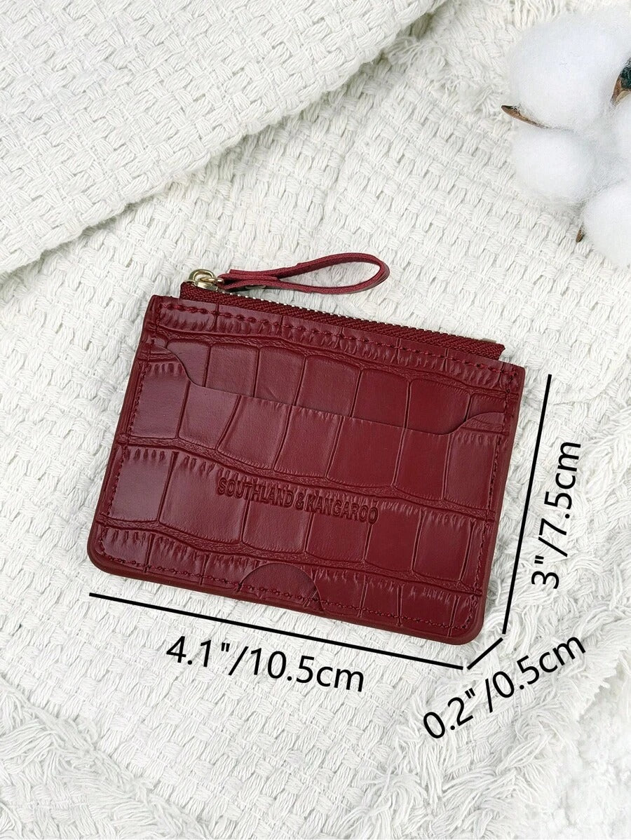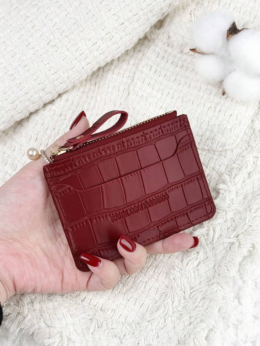 SHEIN محفظة صغيرة منقوشة بسحاب باللون العنابي