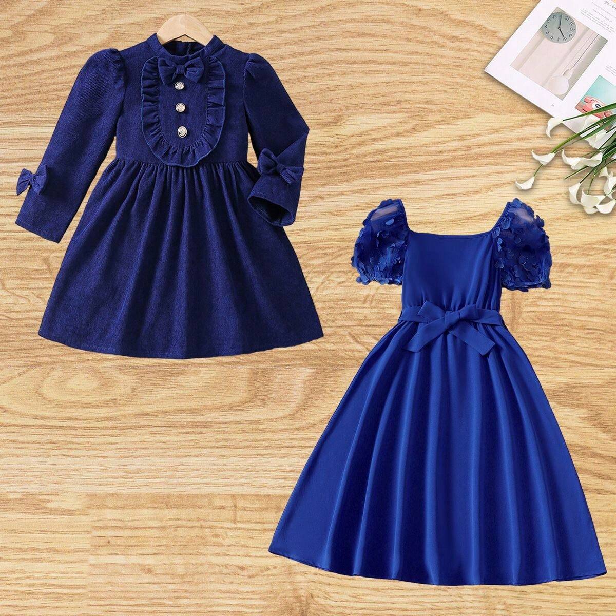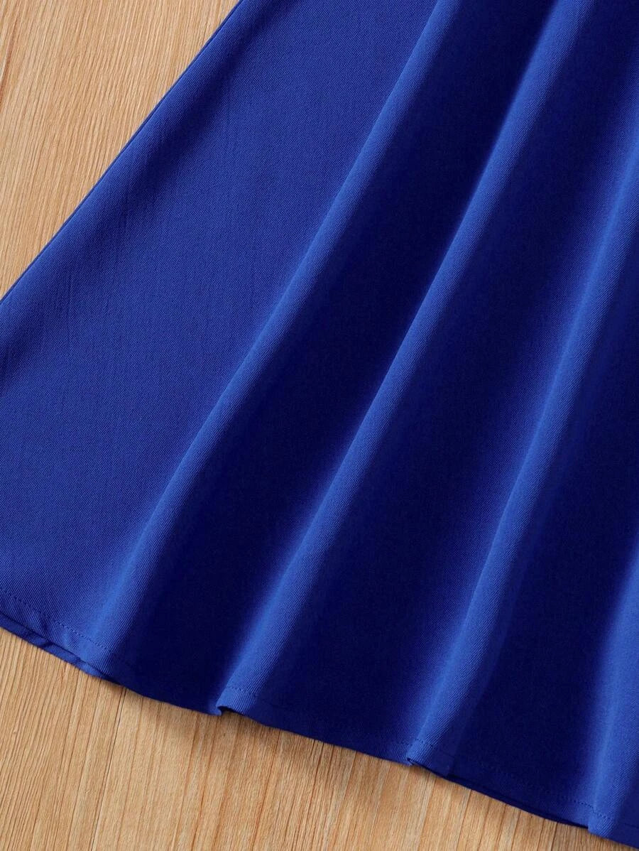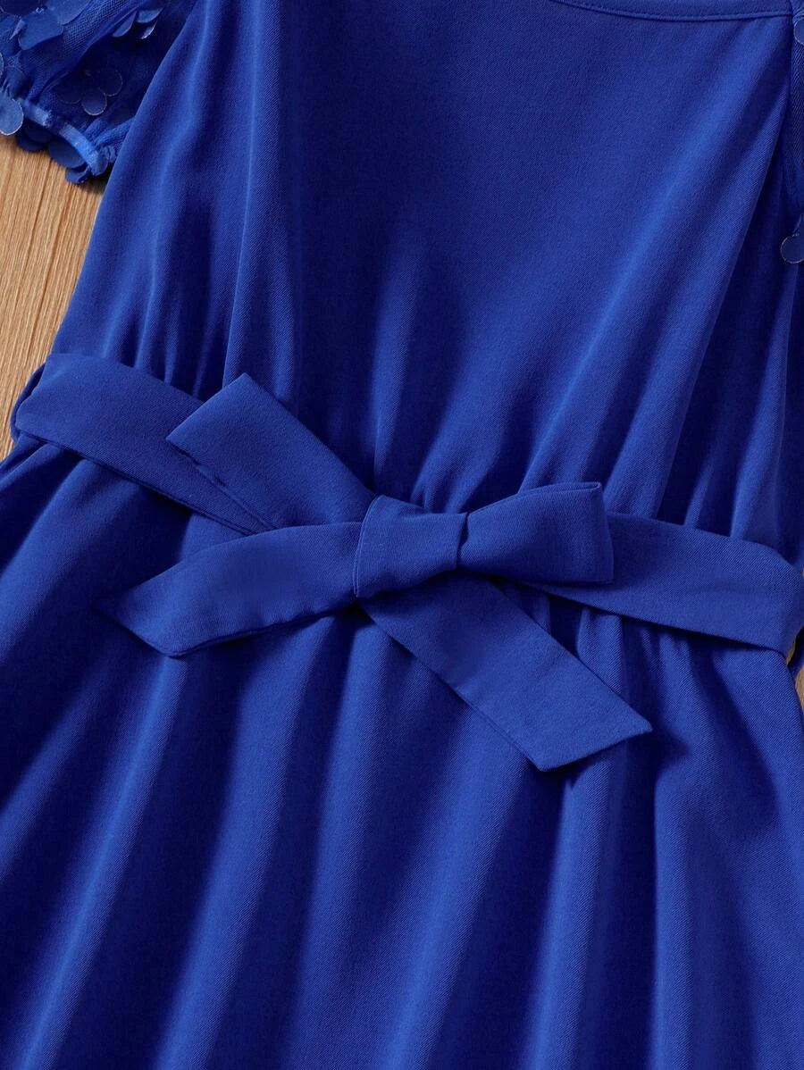 SHEIN Tween فستان للفتاة بتطريزات وأكمام منتفخة مصنوعة من نسيج شبكي، مع حزام