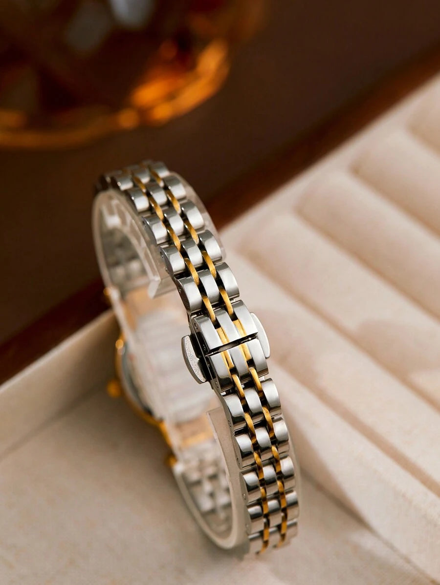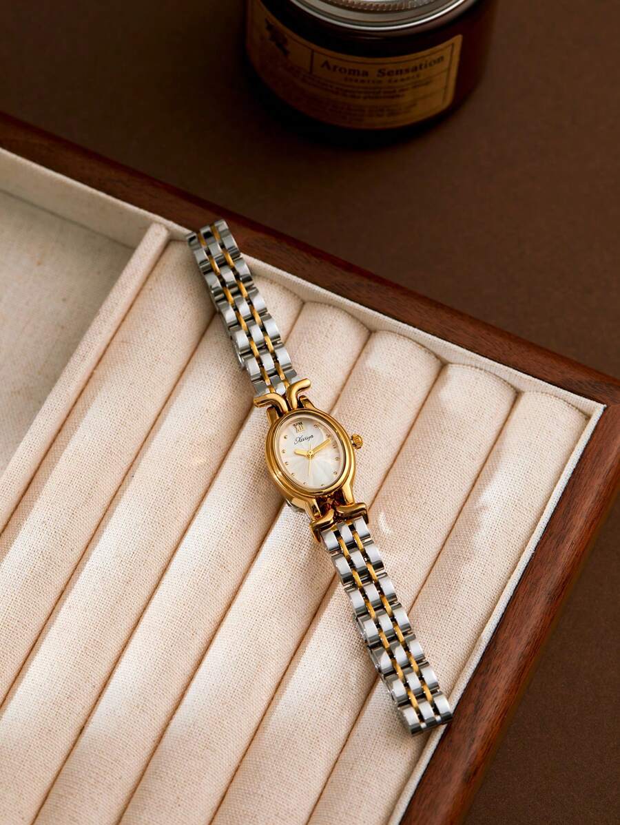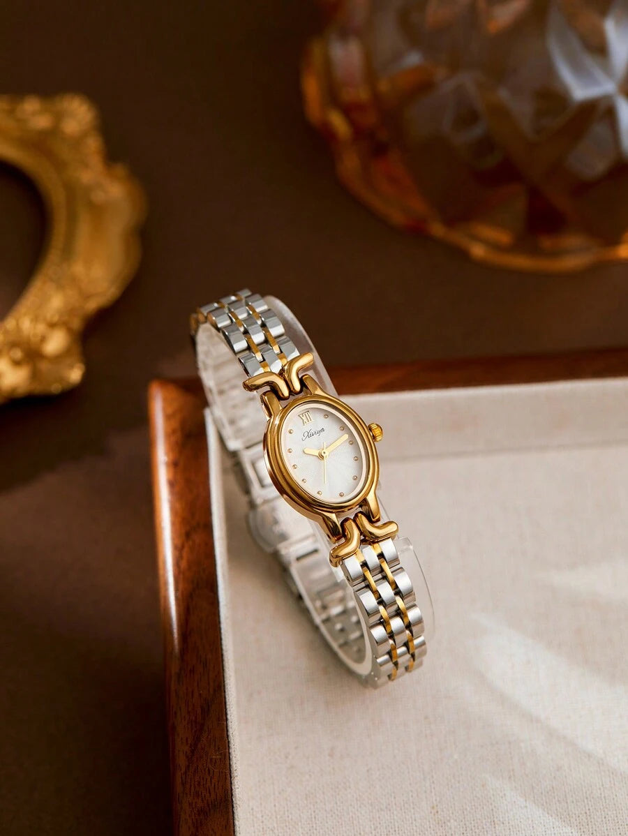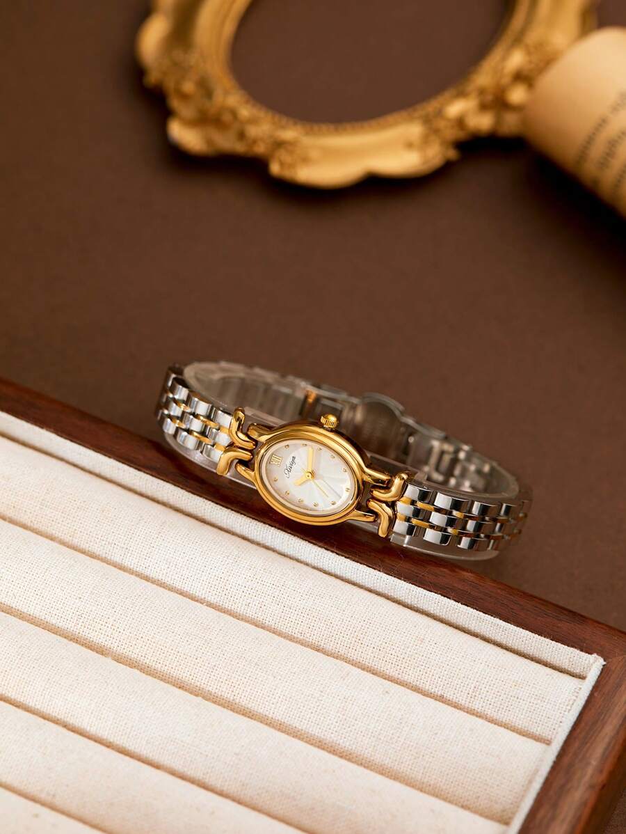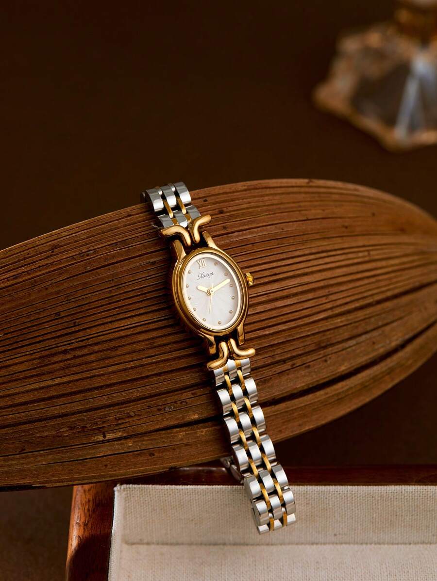 SHEIN XIVIYA ساعة يد نسائية ذهبية بيضاوية مقاومة للماء