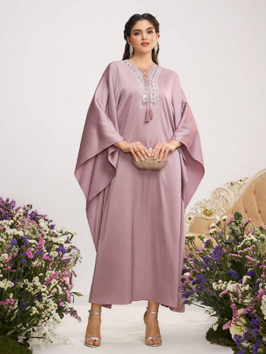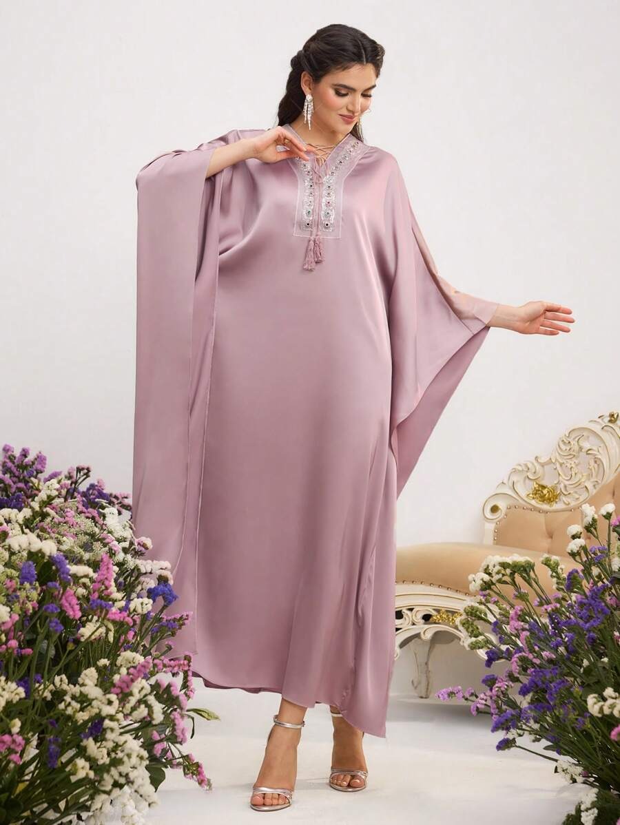 SHEN Al Najma فستان طويل بتصميم وتطريز عربي بلون كشميري