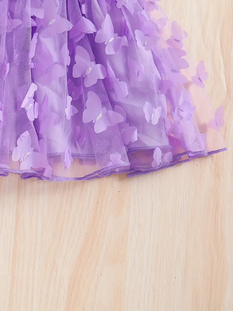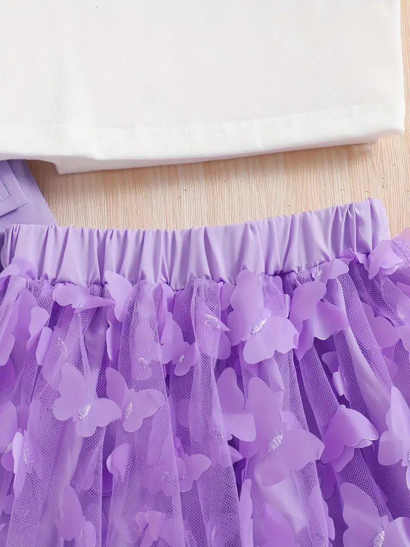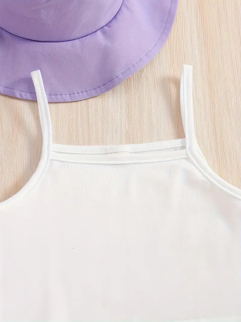 Girl's 4pcs Vest & Camisole & Hat & Elastic Waist Skirt Set, Butterfly Mesh Decor Cute Trendy Outfits, Kids Clothes For Summer