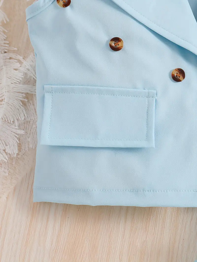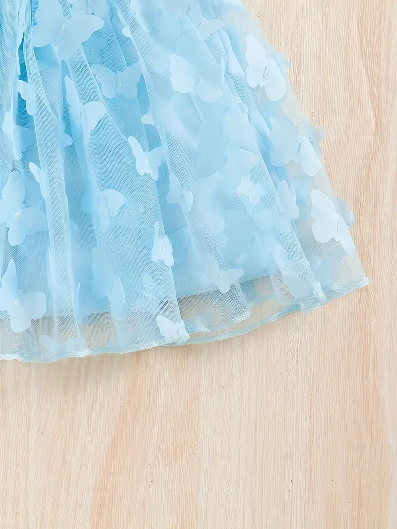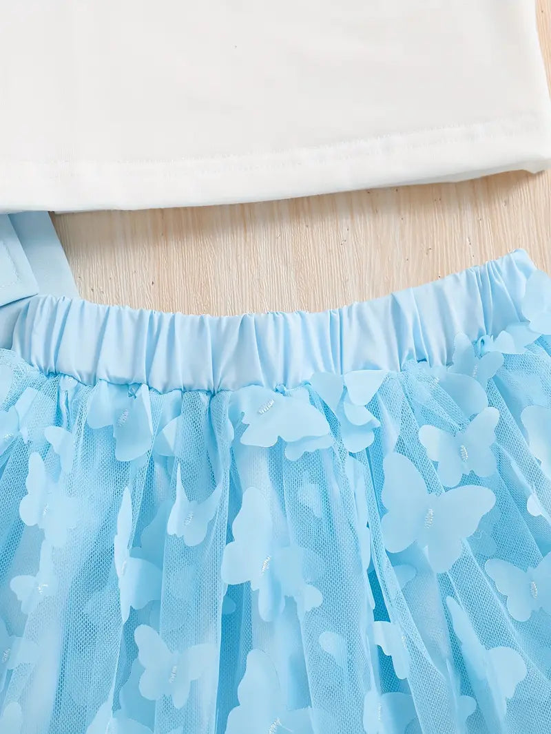 TEMU طقم بنات مكون من 4 قطع، تتضمن قميص بلا أكمام وقبعة وتنورة بخصر مطاطي، مزينة بشبكة فراشة، مناسبة لفصل الصيف