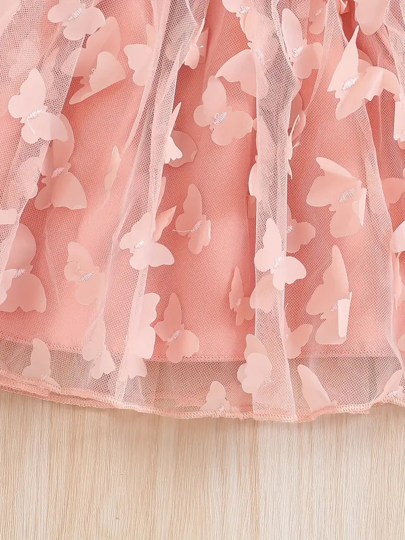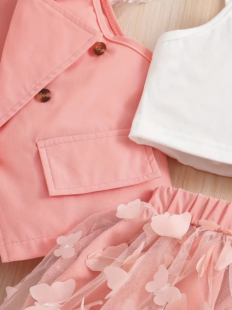 Girl's 4pcs Vest & Camisole & Hat & Elastic Waist Skirt Set, Butterfly Mesh Decor Cute Trendy Outfits, Kids Clothes For Summer