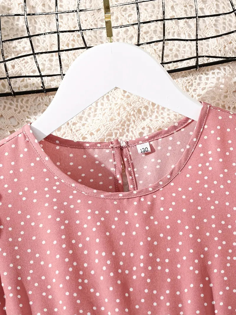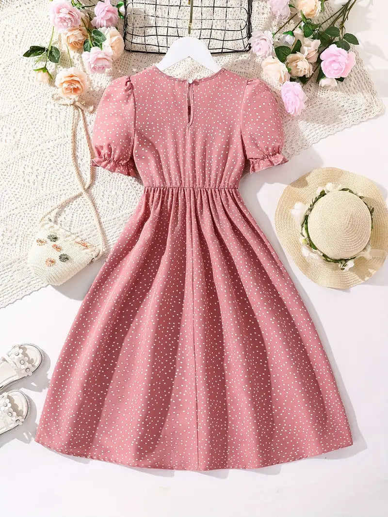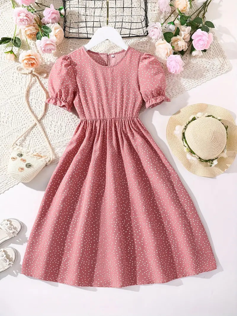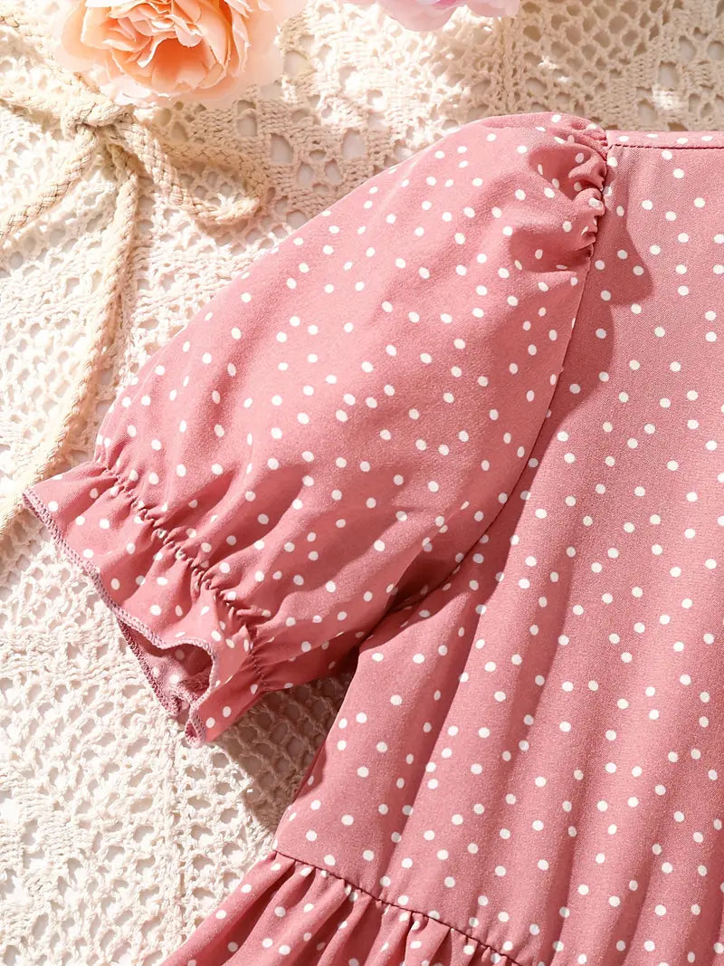 Girls Puff Sleeve Polka Dot Graphic Princess Dress For Party Beach Vacation Teen Kids Summer Clothes