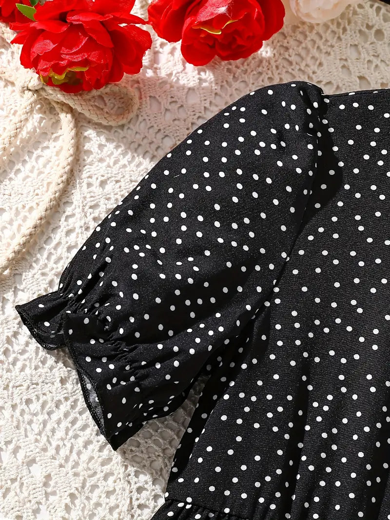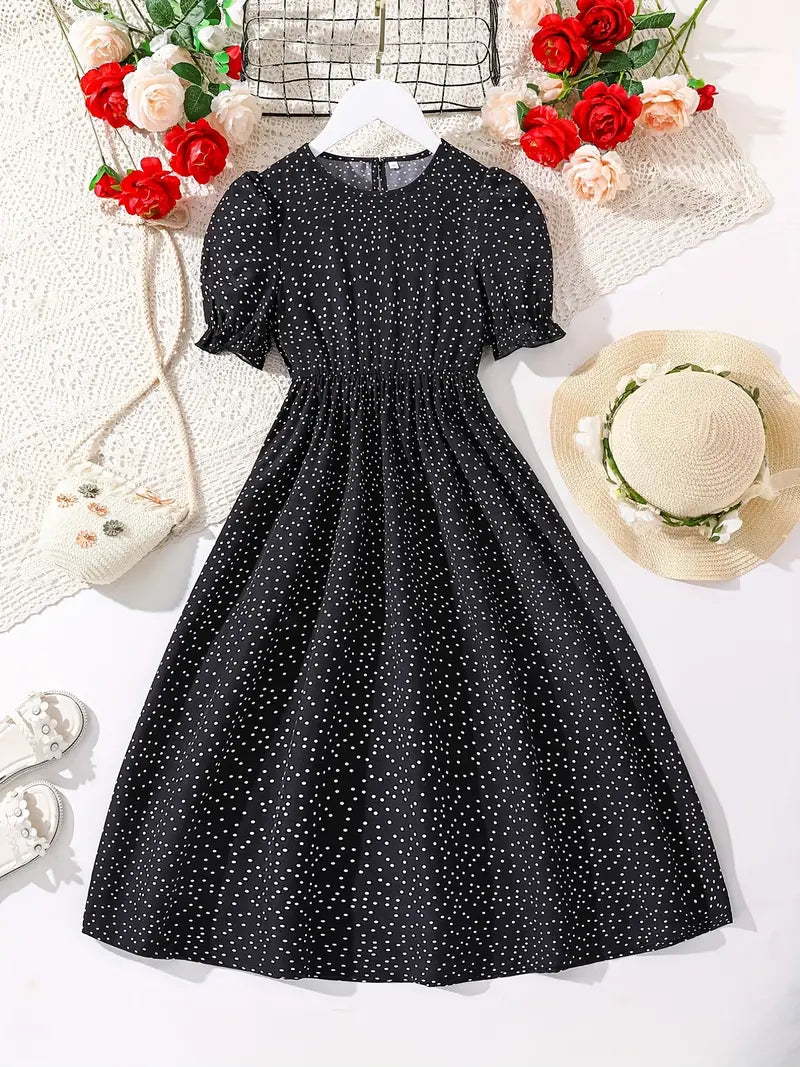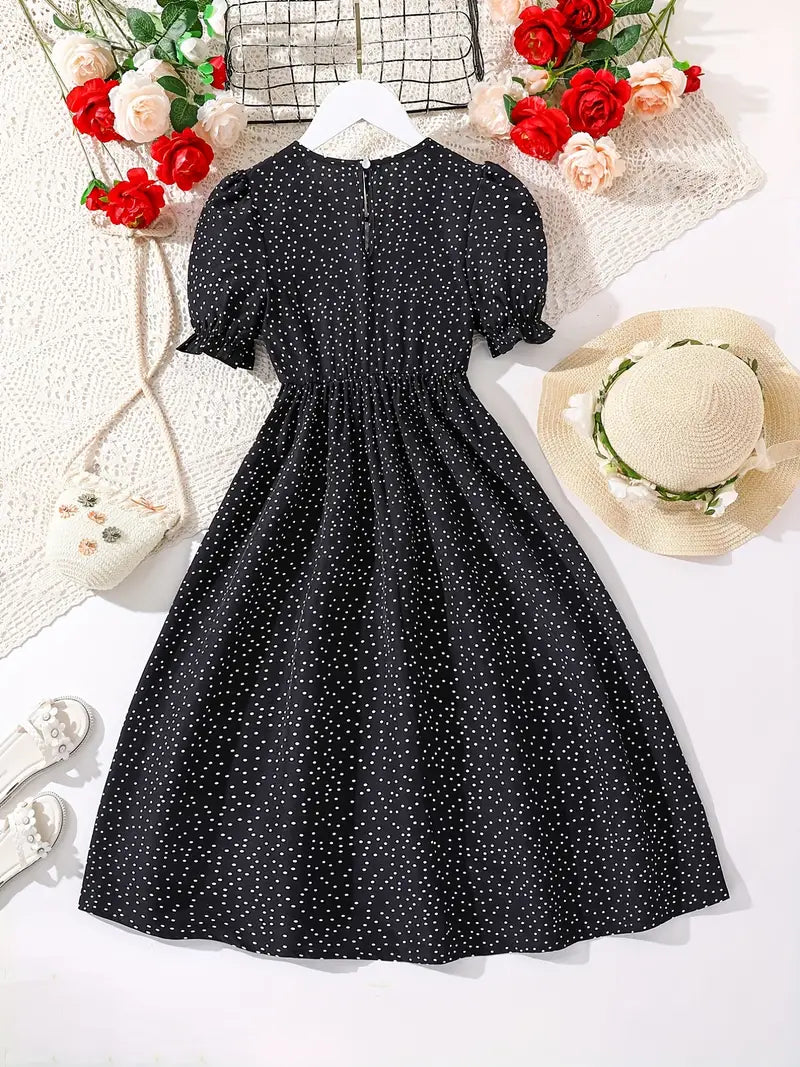 Girls Puff Sleeve Polka Dot Graphic Princess Dress For Party Beach Vacation Teen Kids Summer Clothes