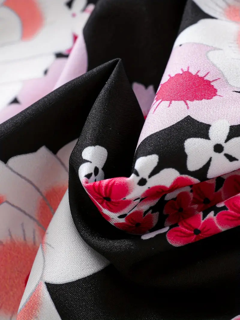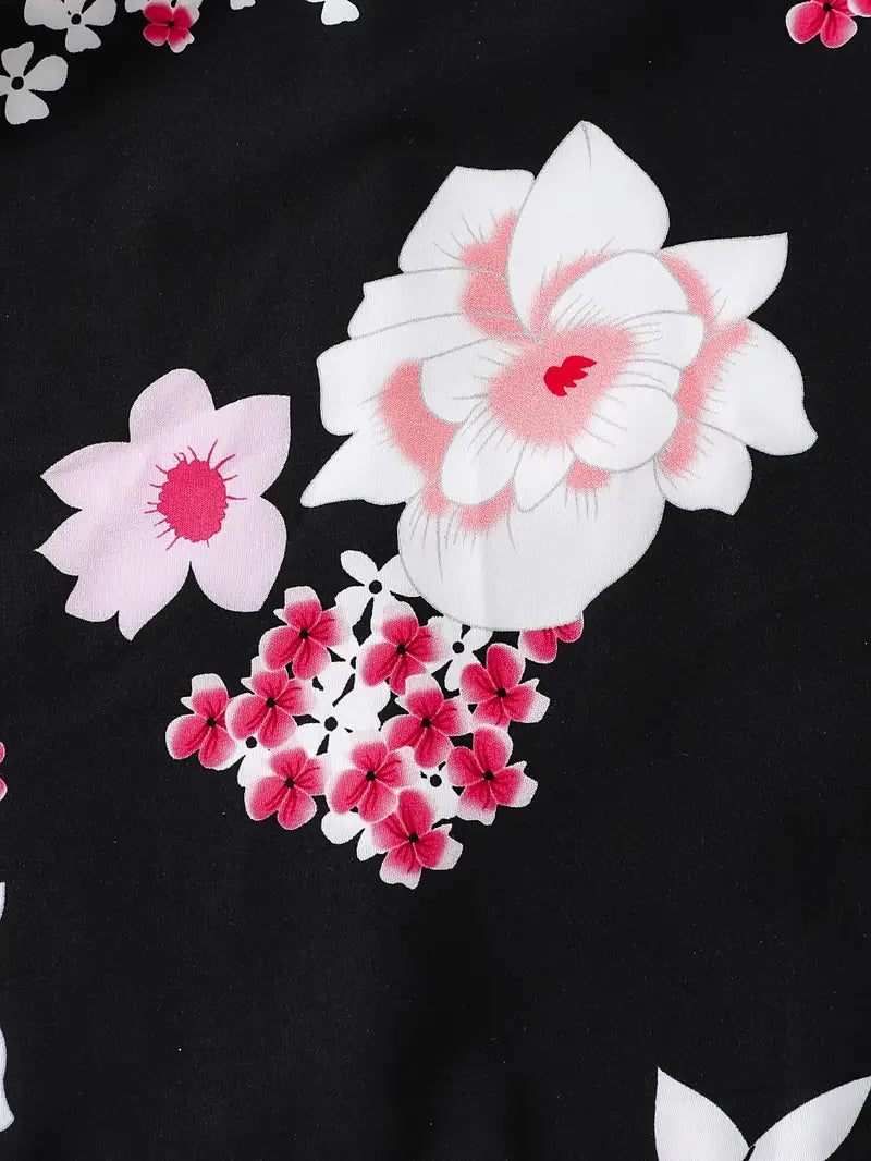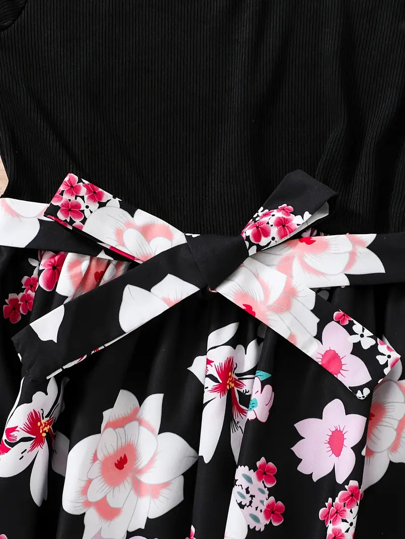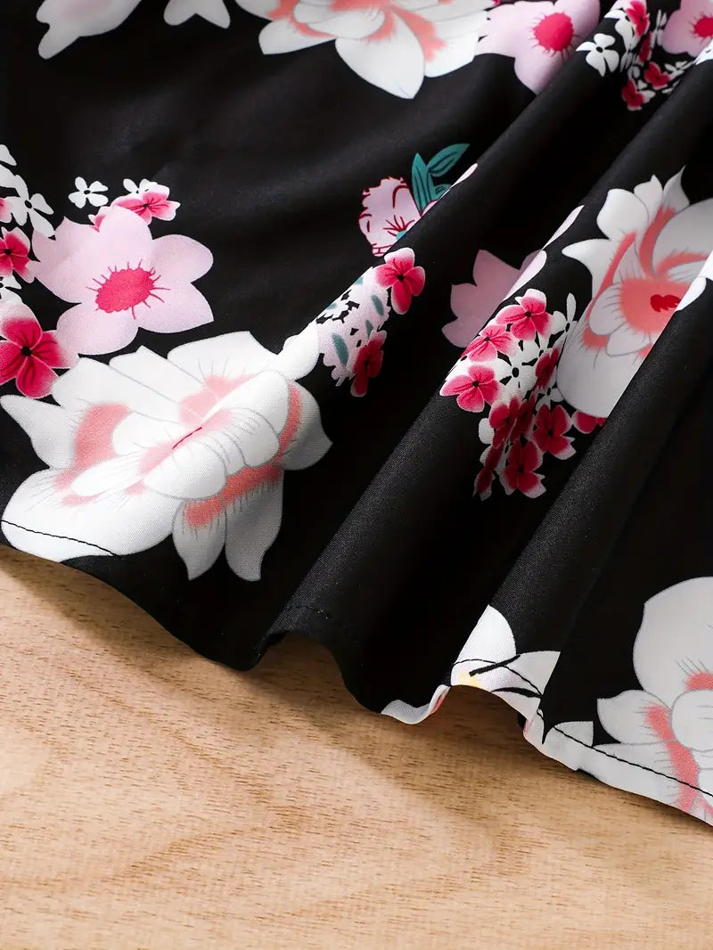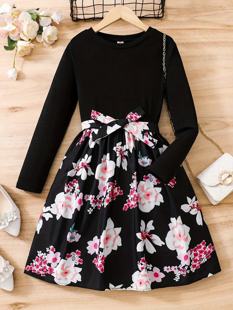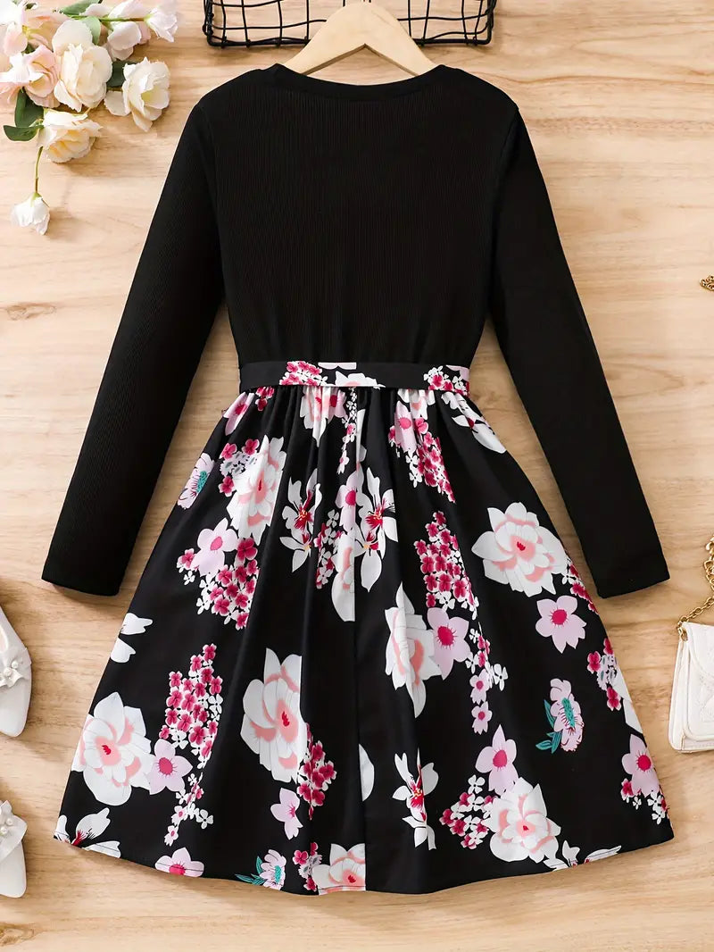 TEMU فستان بنات أنيق للفتيات بأكمام طويلة وقصة مزين بطبعات زهور