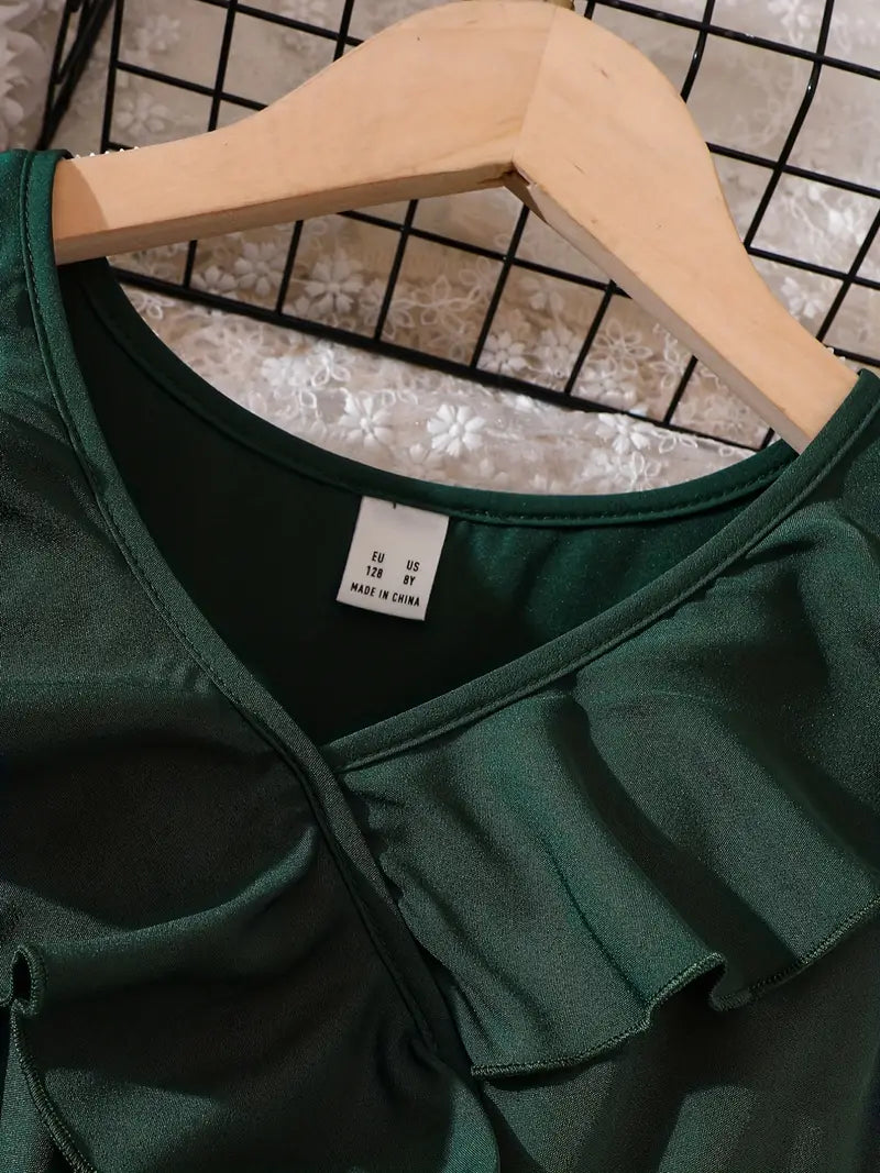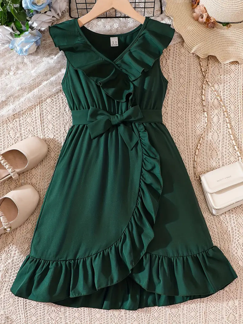Toddler Girls Ruffle Trim Elegant V-neck Dress Casual For Summer