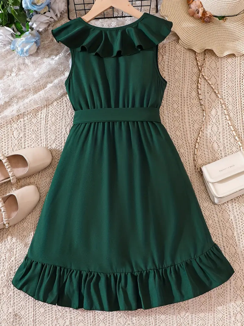 TEMU فستان بنات أنيق مع حواف مزمومة للفتيات الصغيرات مناسب للصيف