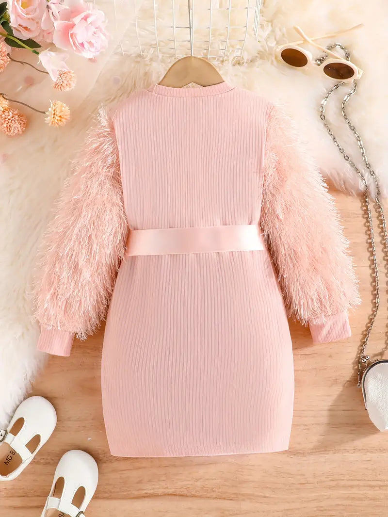 Elegant Girls Crew Neck Long Sleeve Bodycon Dress For Spring Fall Gift