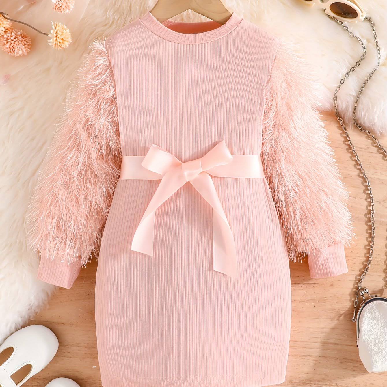 TEMU فستان بنات فتيات أنيق بياقة دائرية وأكمام طويلة، مثالي كهدية لفصلي الربيع والخريف