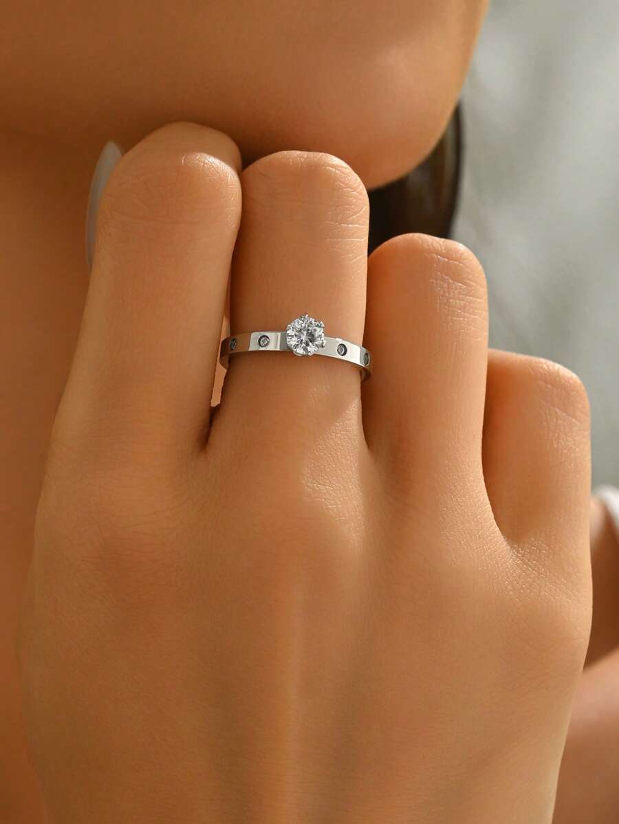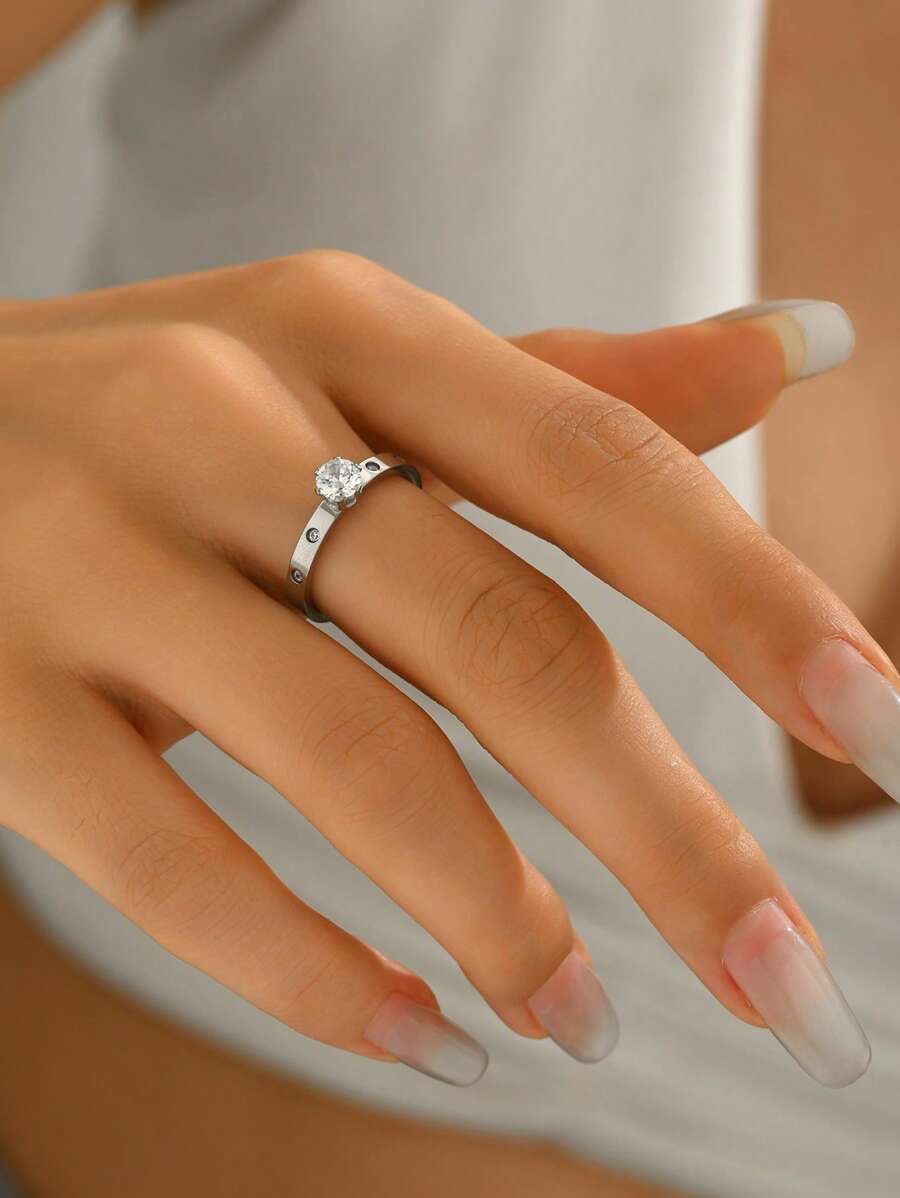 SHEIN خاتم ستانلس ستيل فضي للأزواج