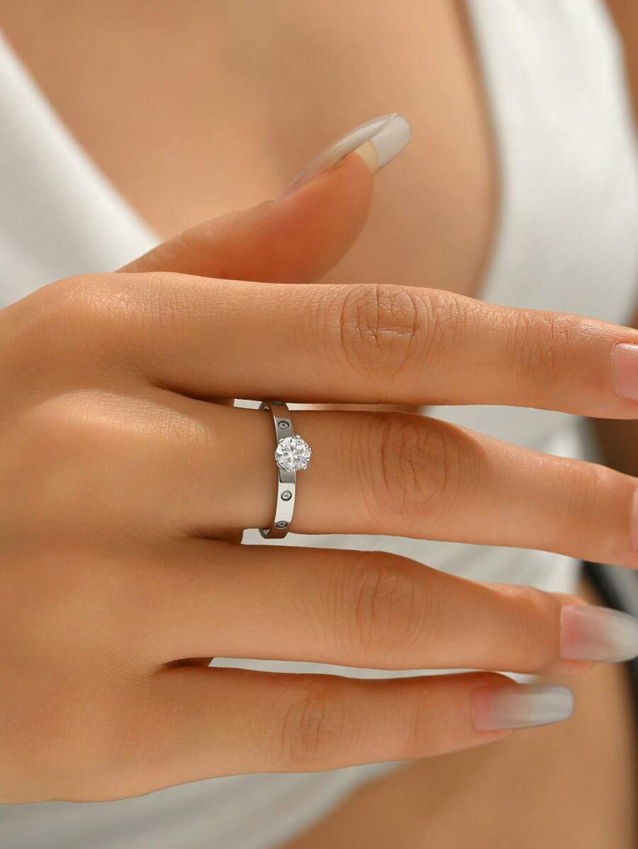 خاتم نسائي أنيق من الفولاذ المقاوم للصدأ مطلي بالذهب الوردي مع لمسات ماس صناعي، خفيف الوزن ومثالي كخاتم للأزواج.