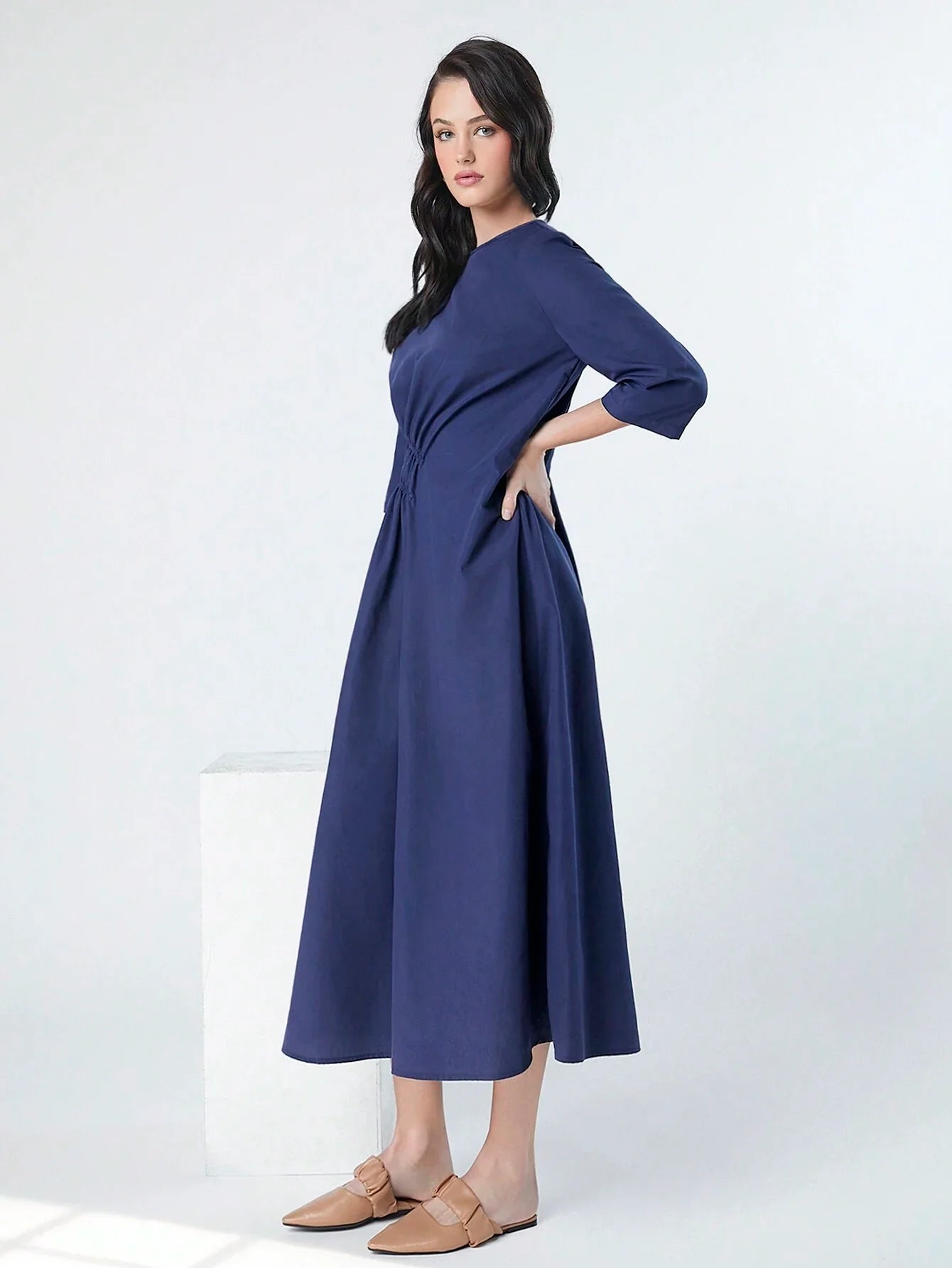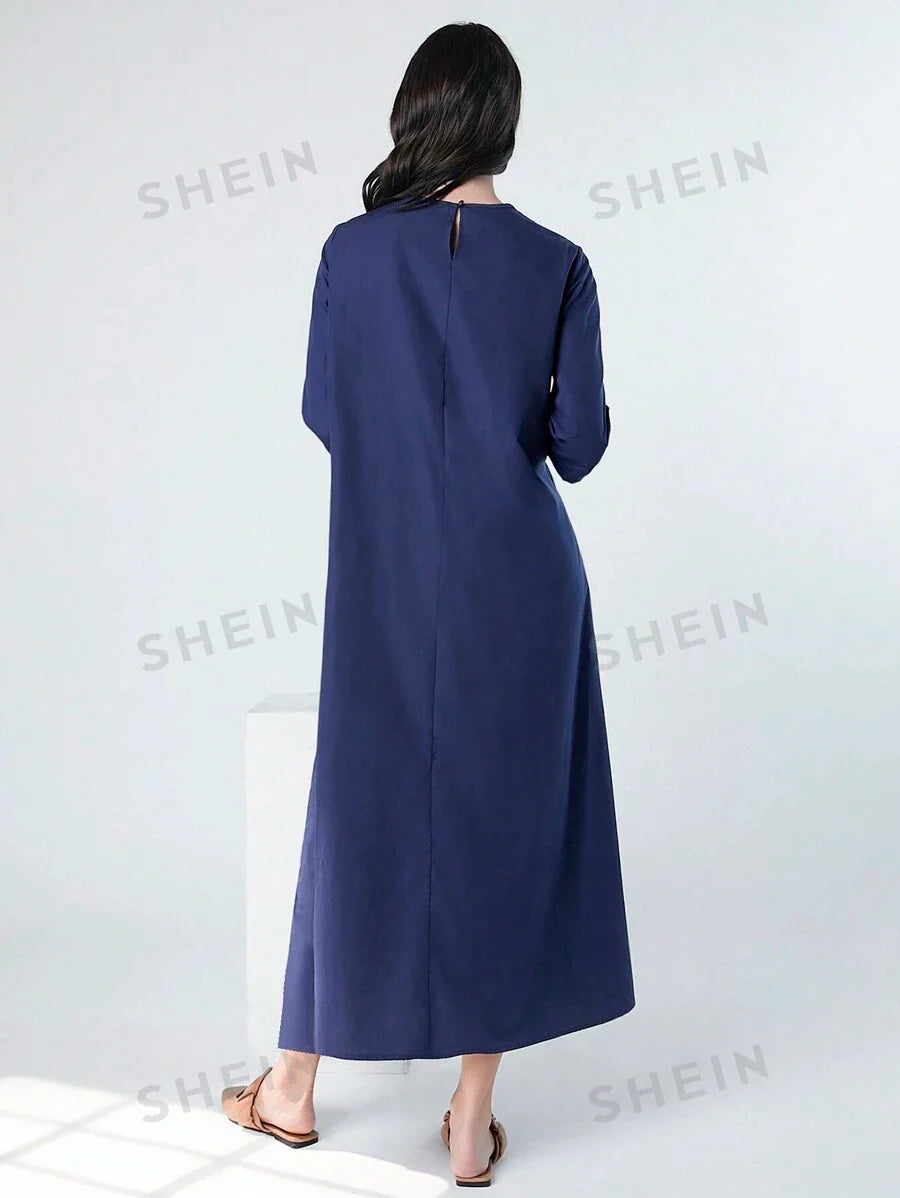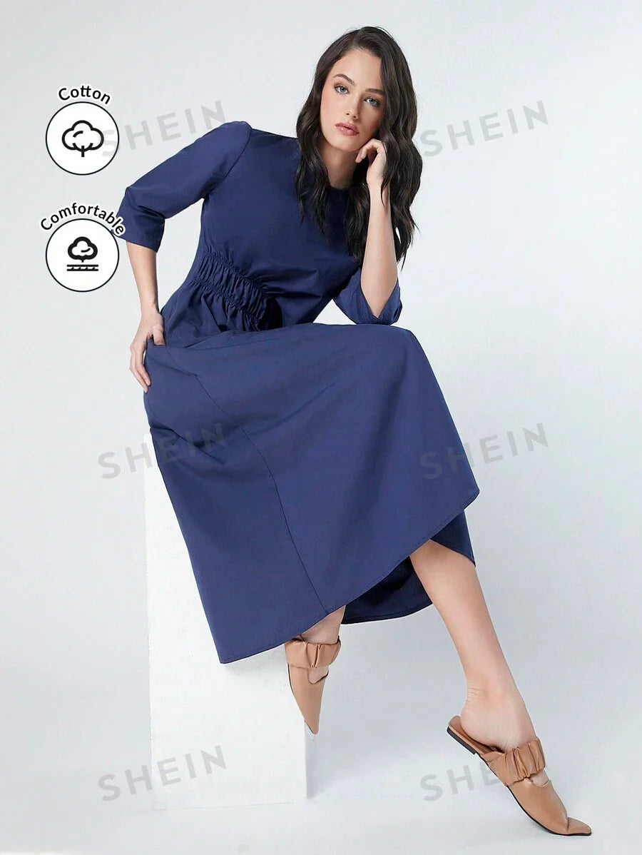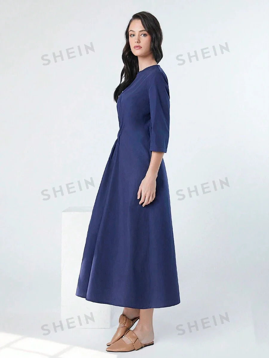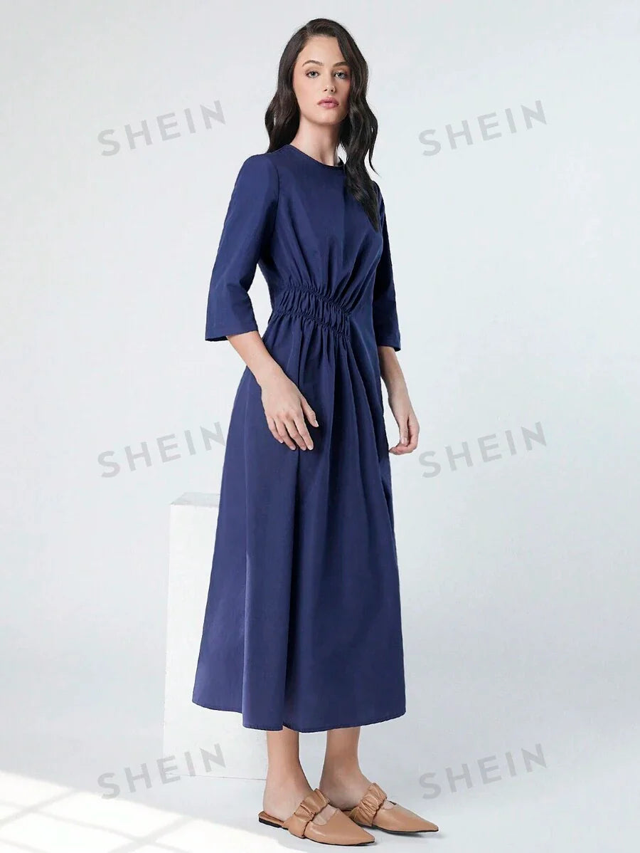SHEIN Mulvari فستان نسائي دائري عنق مع حزام مجمع بالخصر