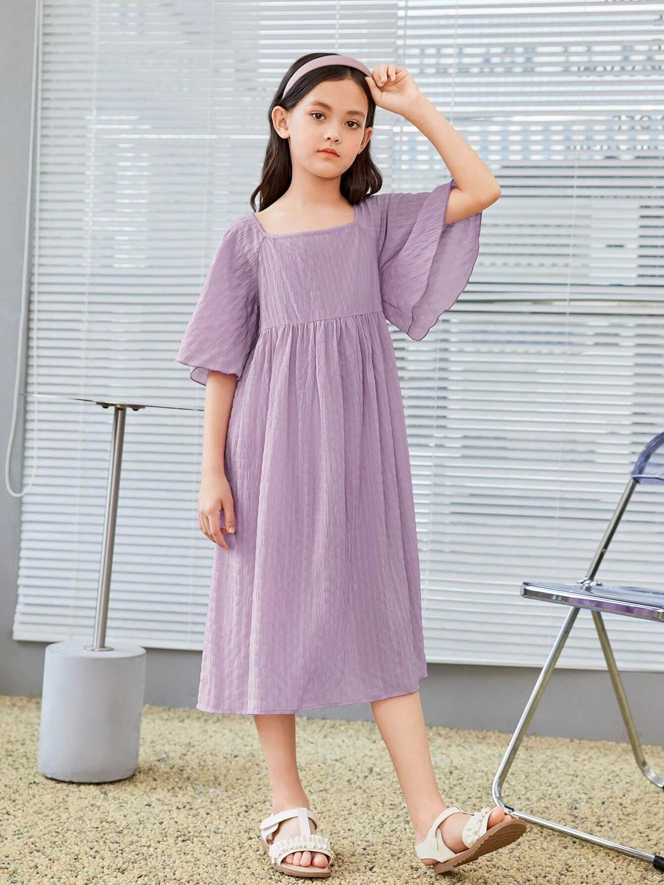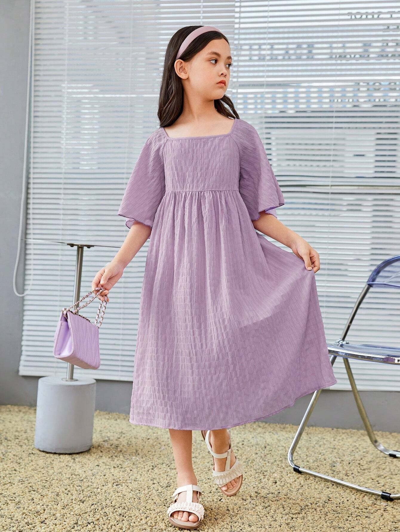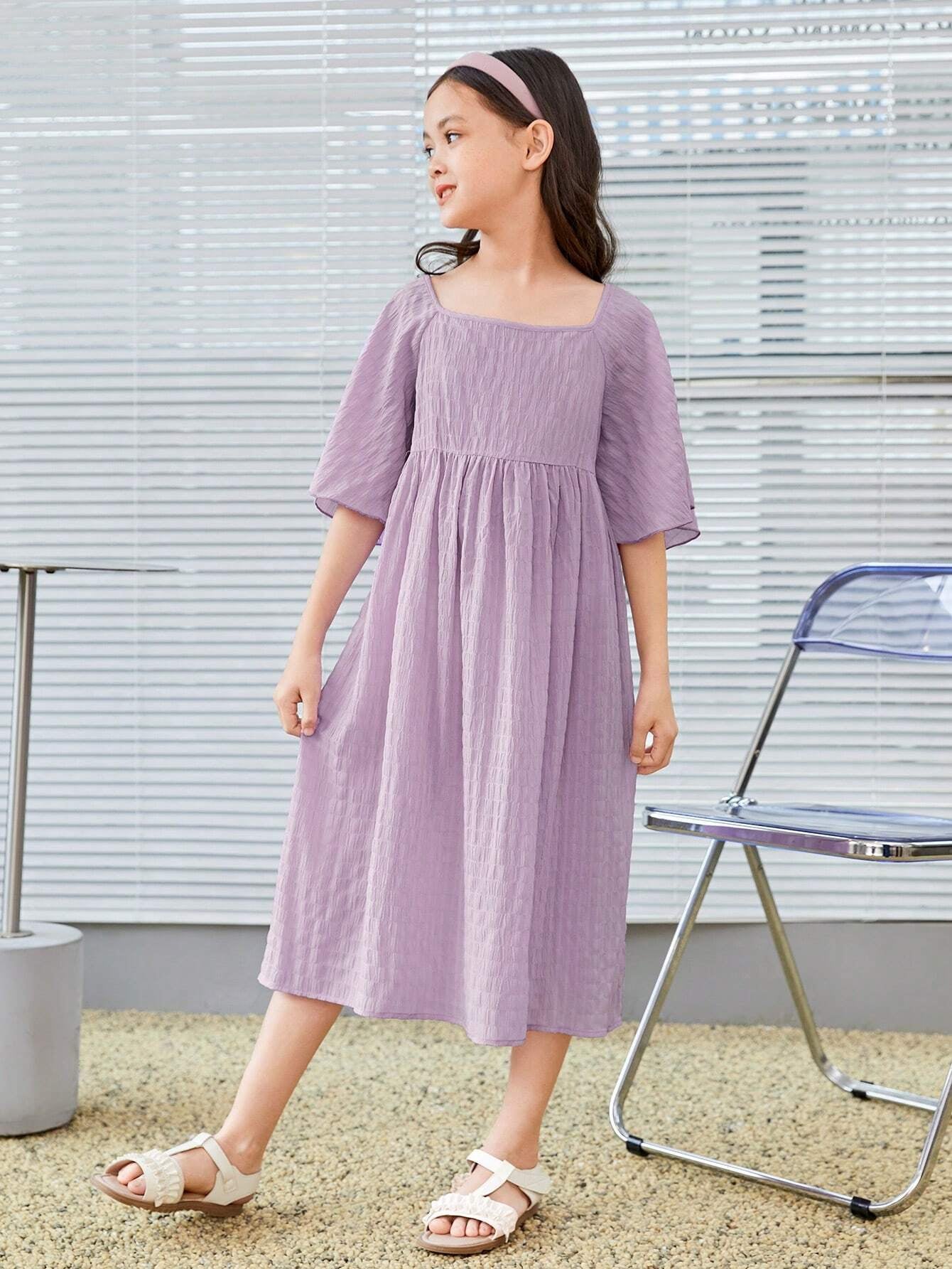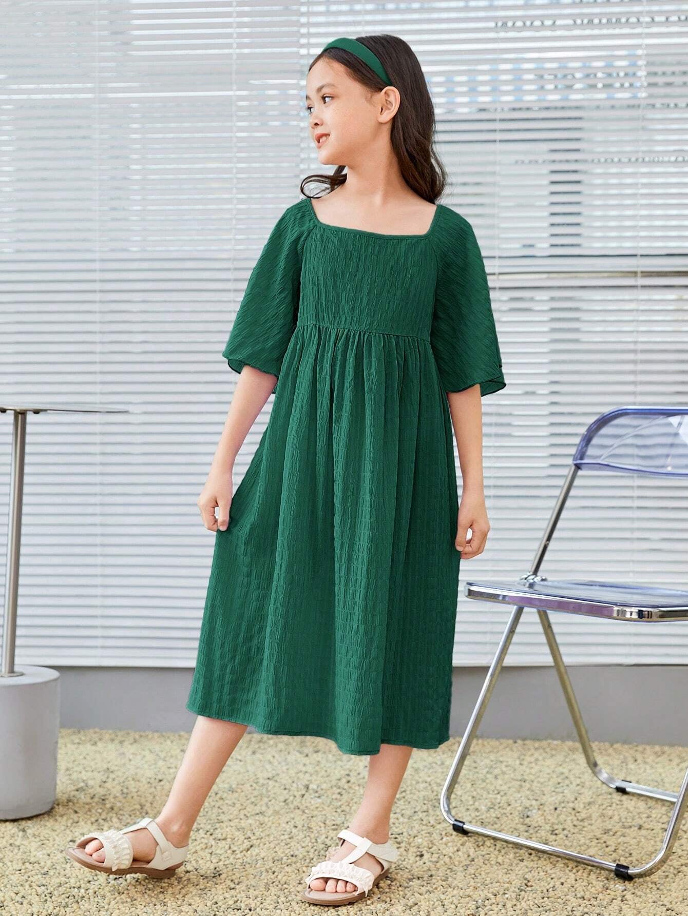 SHEIN فستان ربيعي/صيفي فضفاض أنيق برقبة مربعة وأكمام كاب للفتيات في سن المراهقة