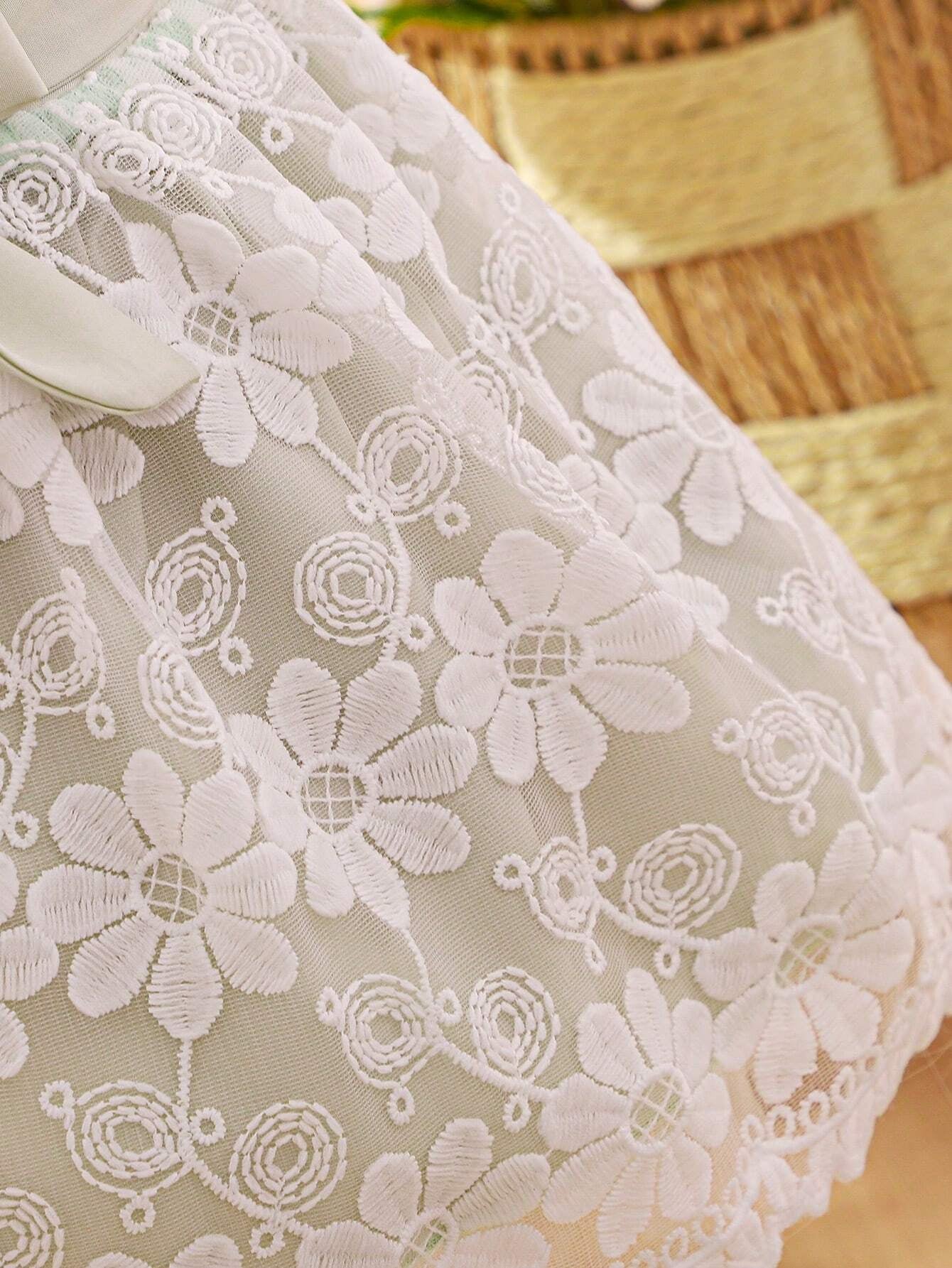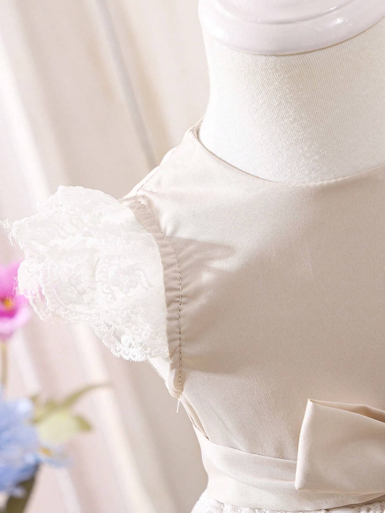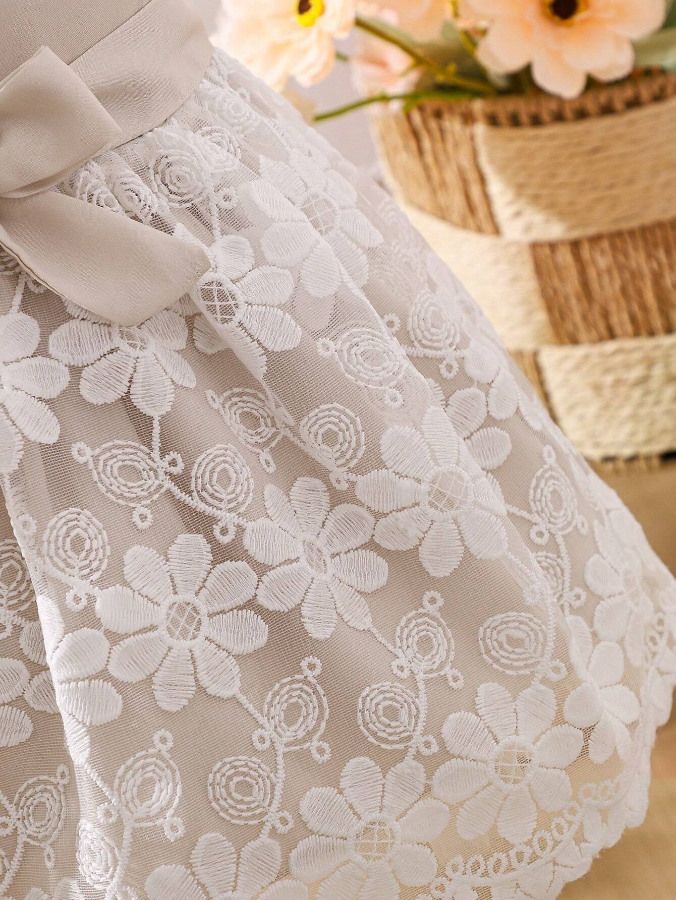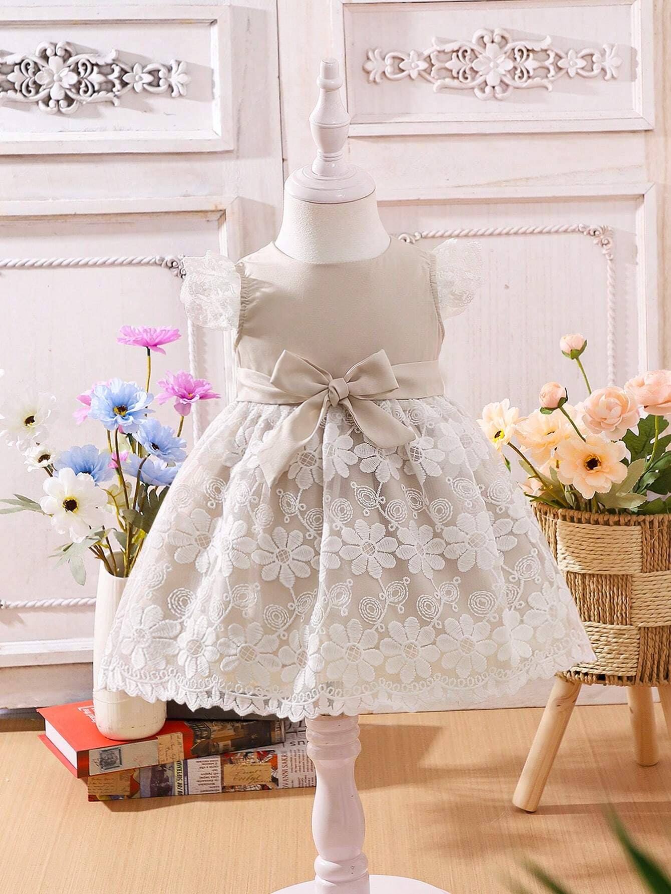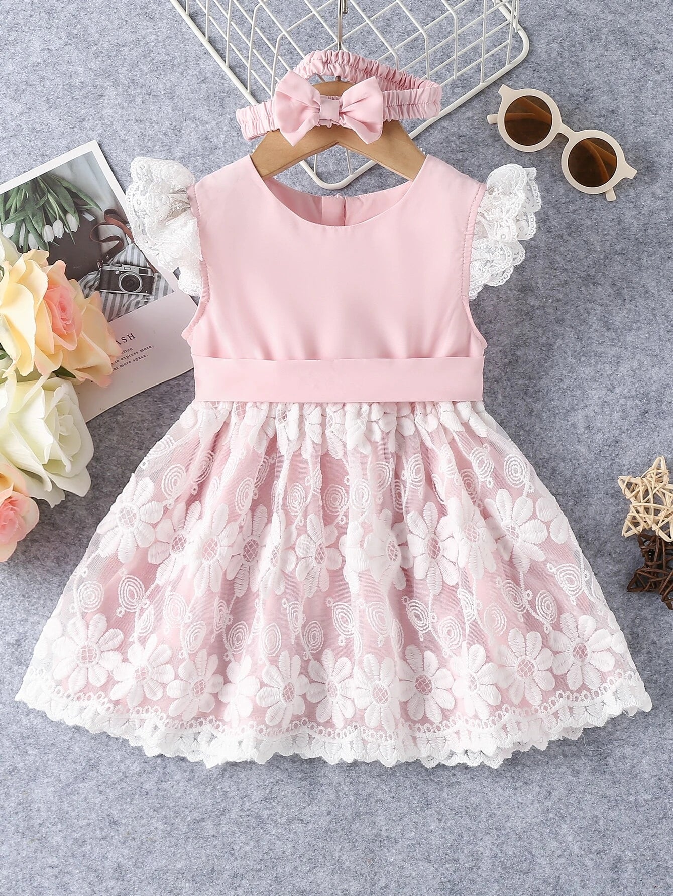 فستان رضيعة بحافة روبل شريط دانتيل متباينة