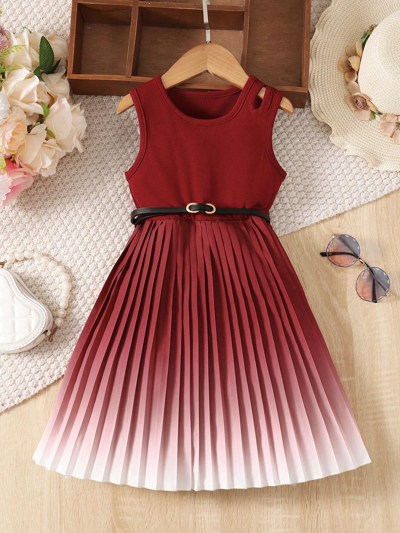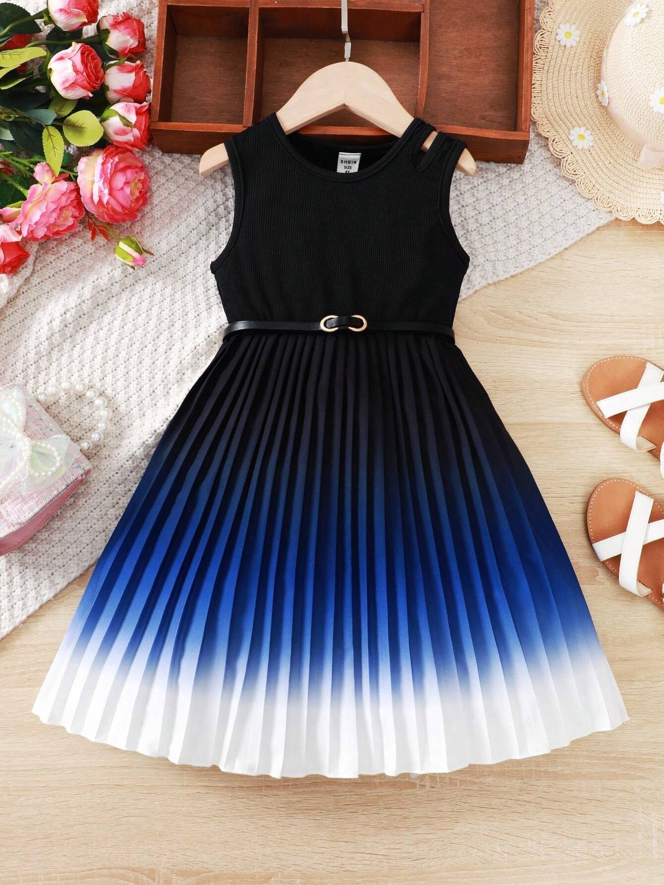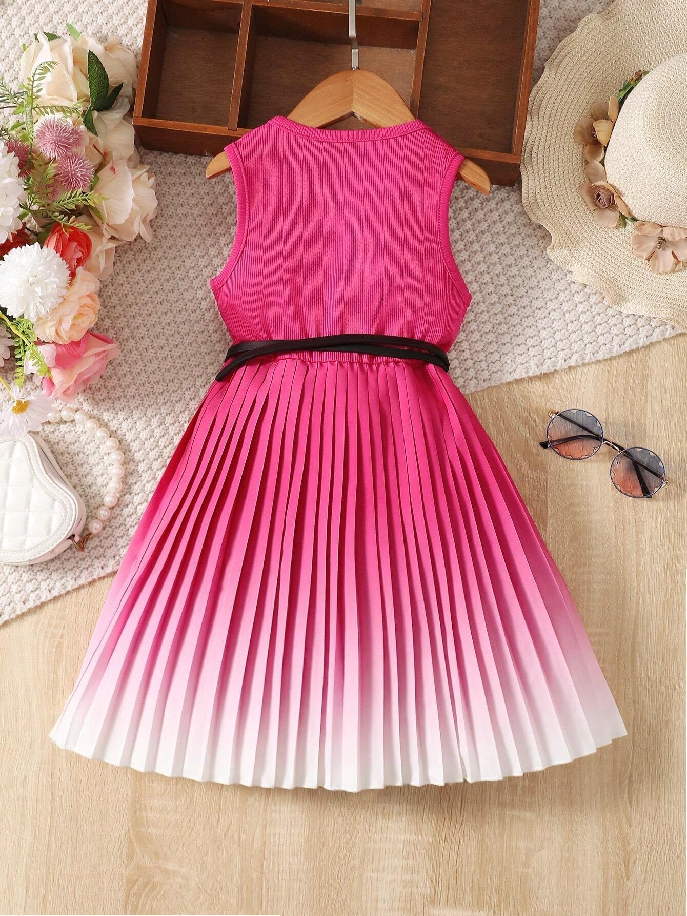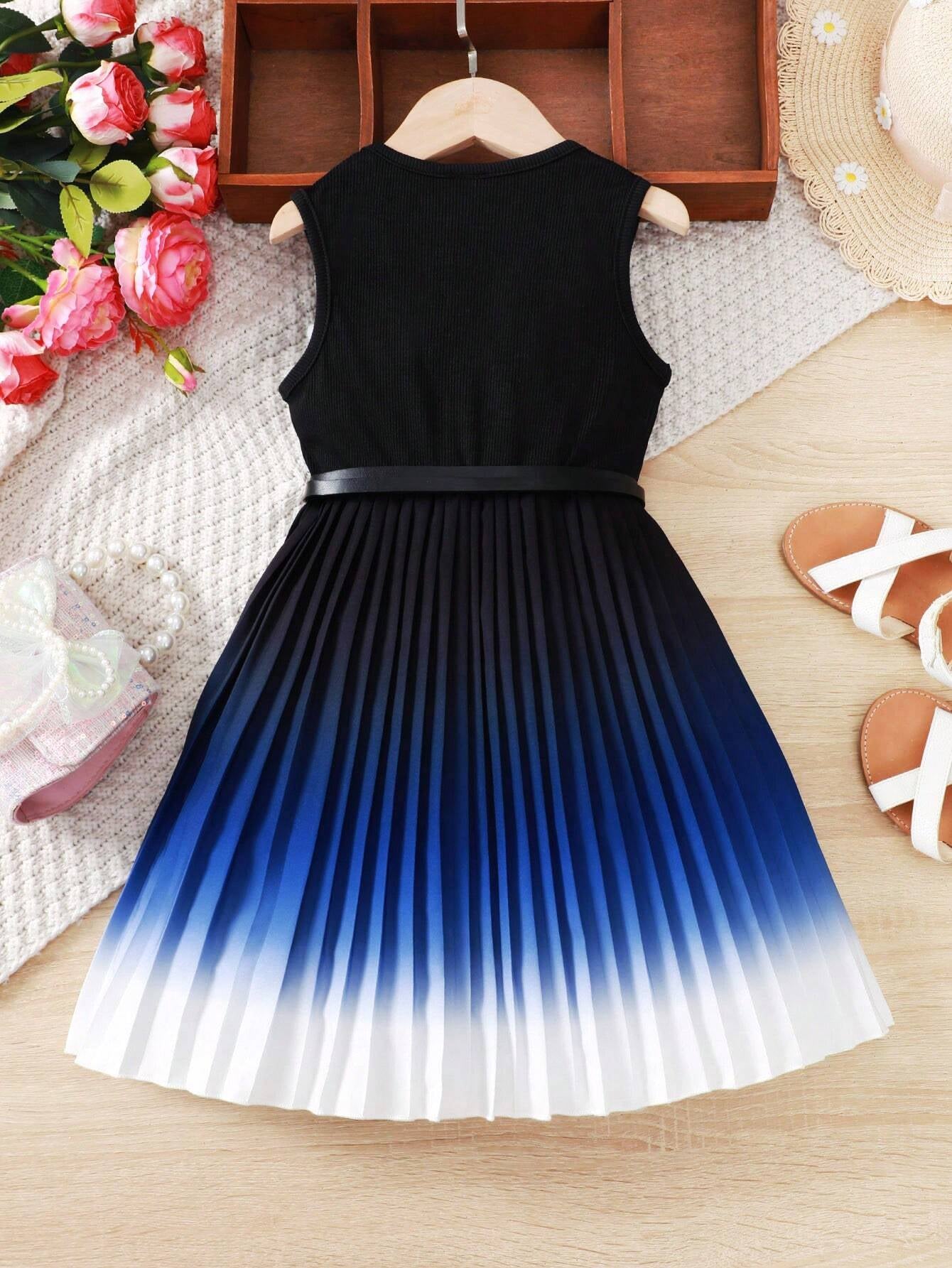 SHEIN فستان اطفال بحاشية مجعدة بدون اكمام بتدرج لونيات لصيف