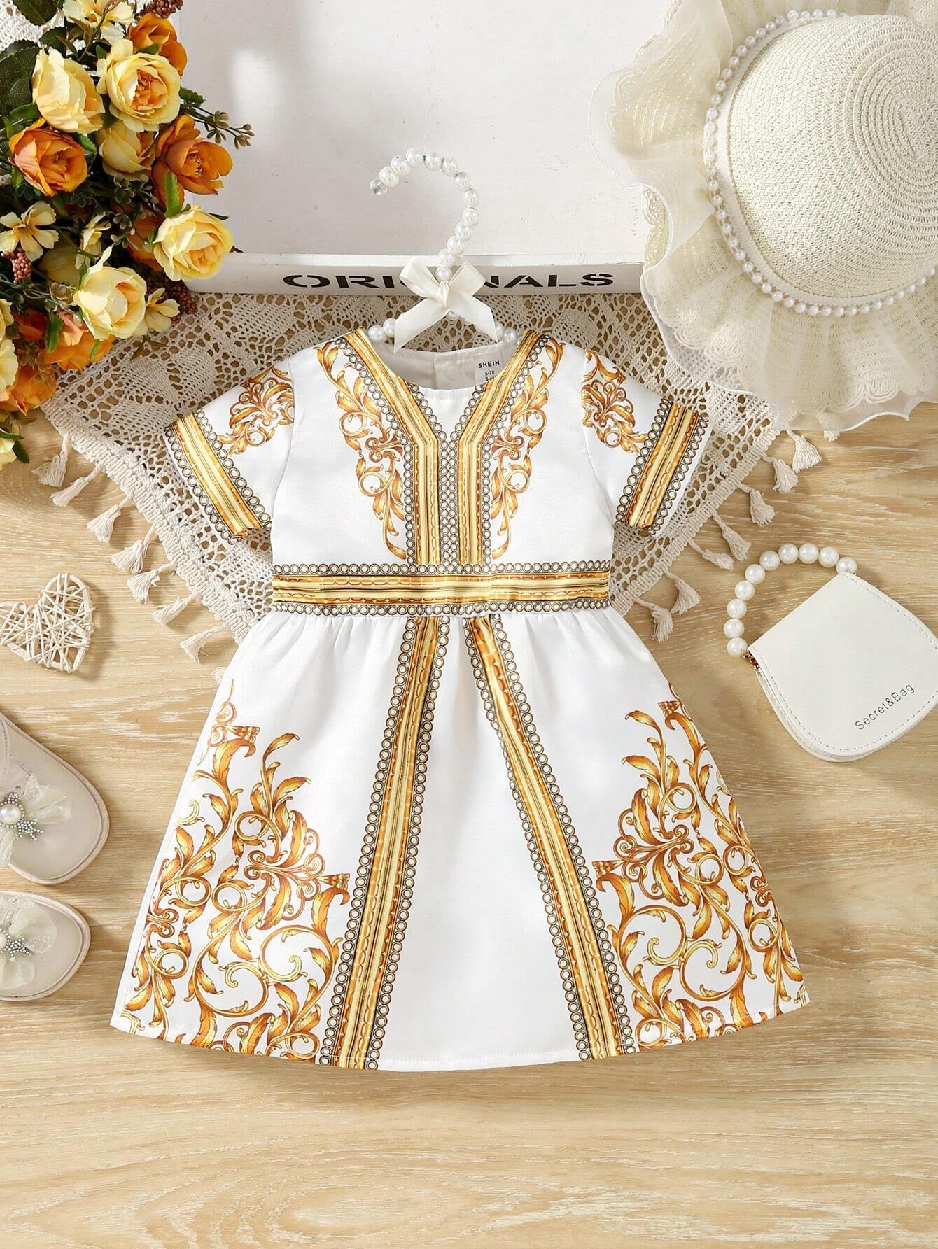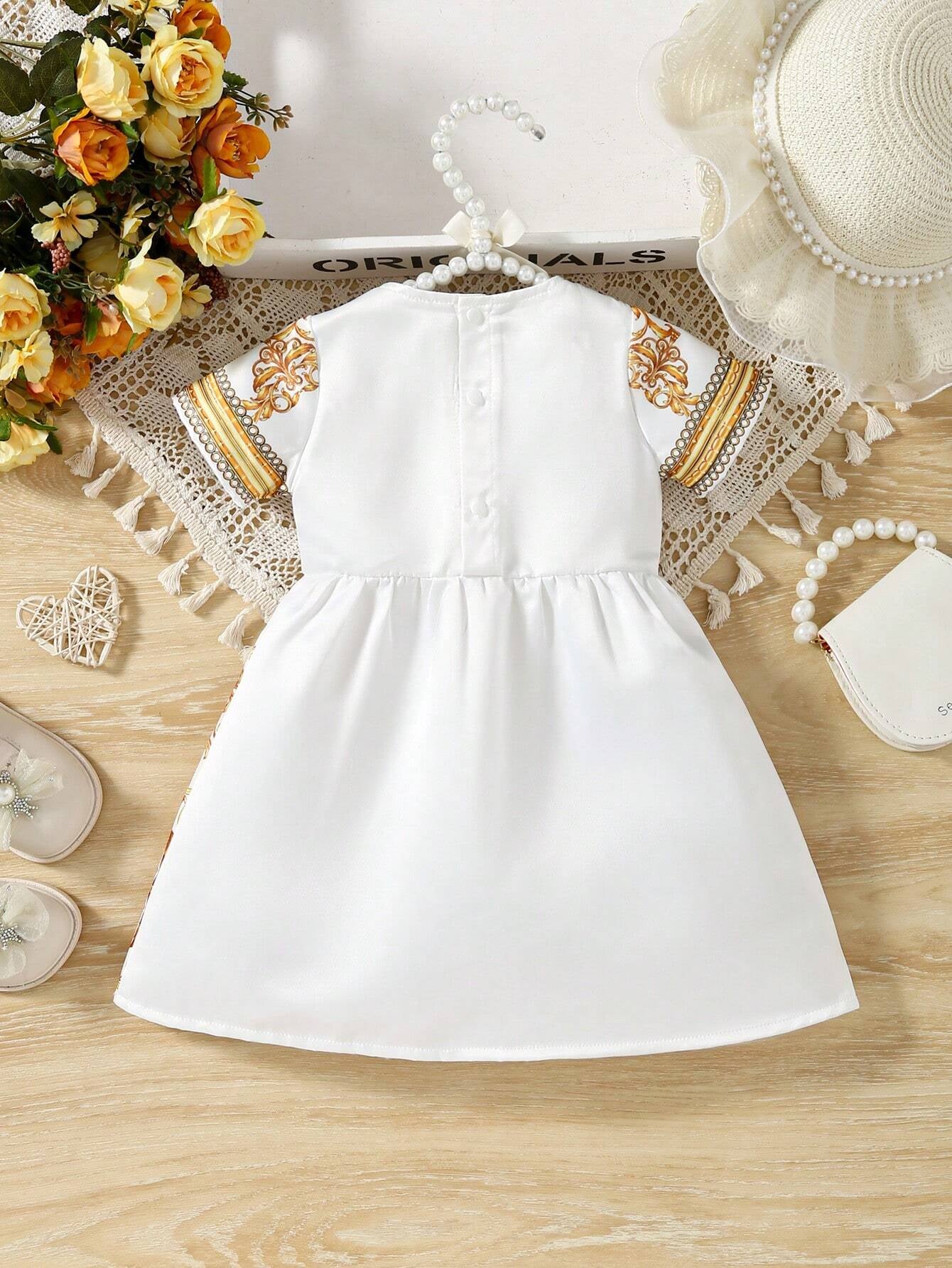 SHEIN فستان الزفاف القصير للبنات الرضع مريح وجذاب وعصري بأكمام قصيرة مناسب للأما