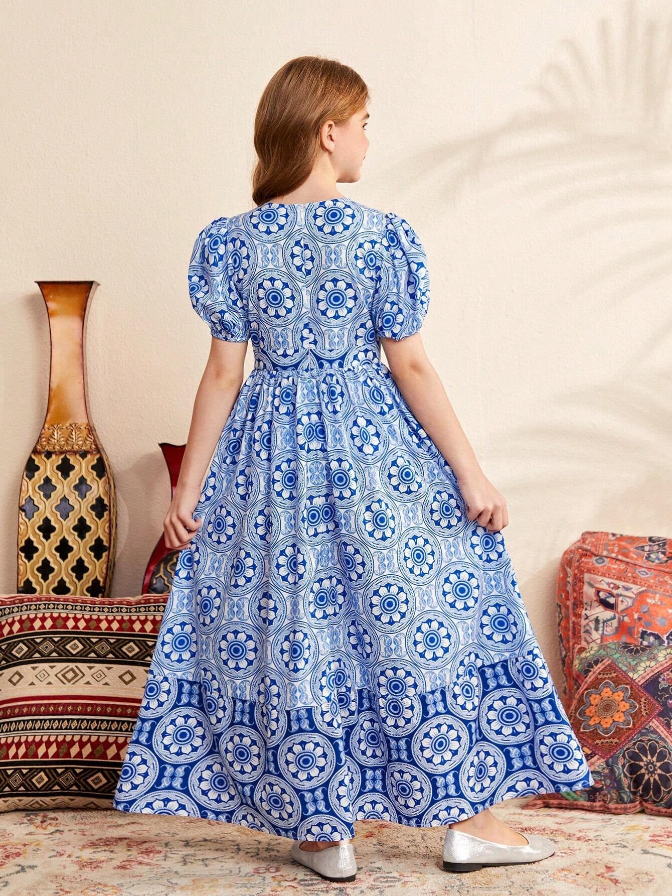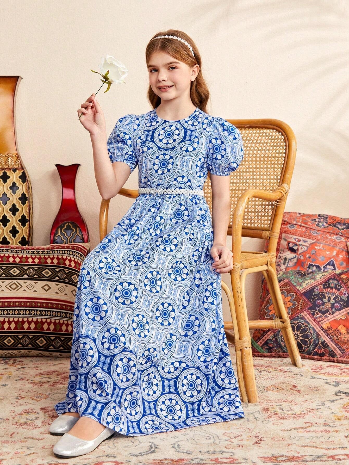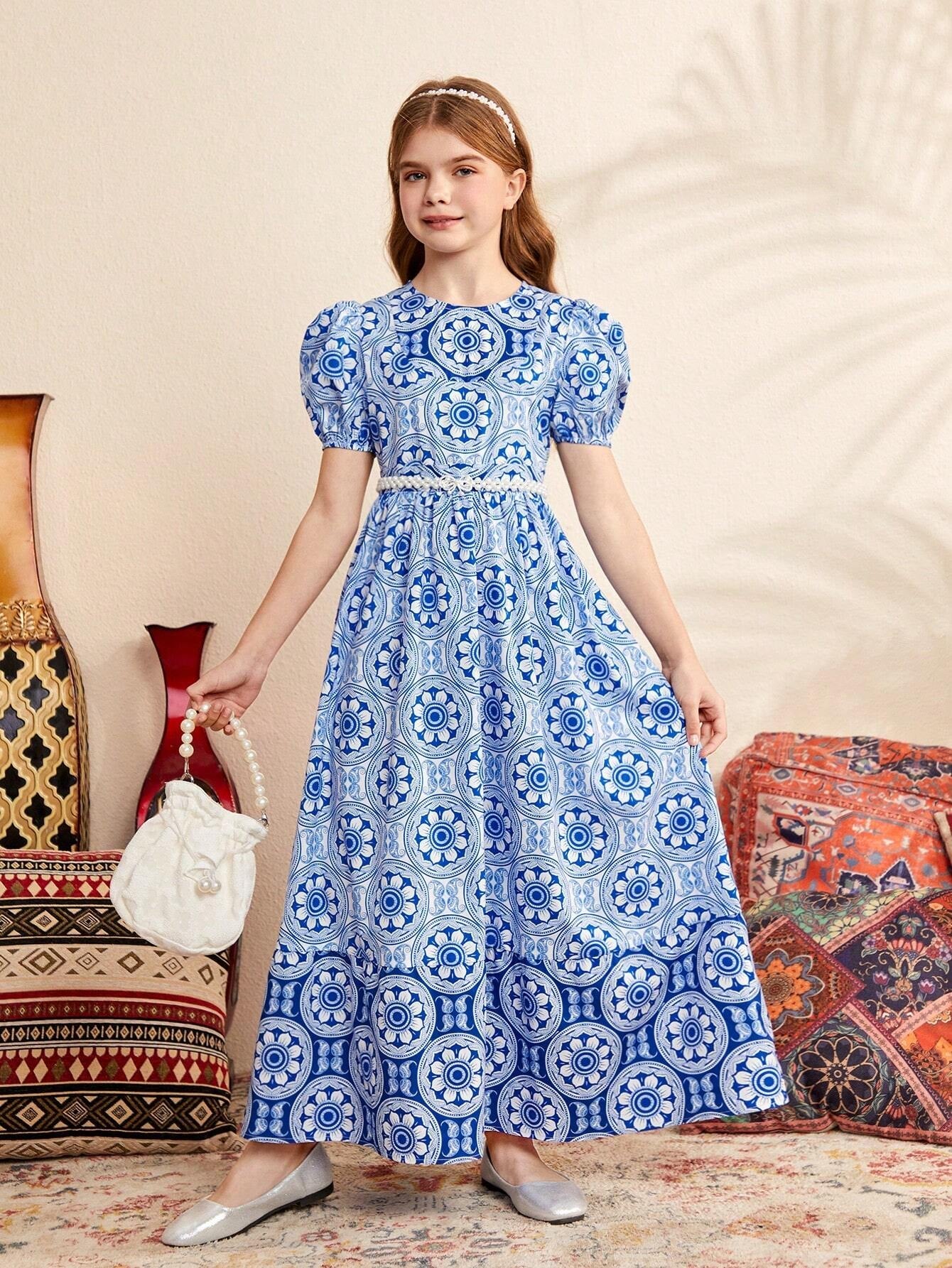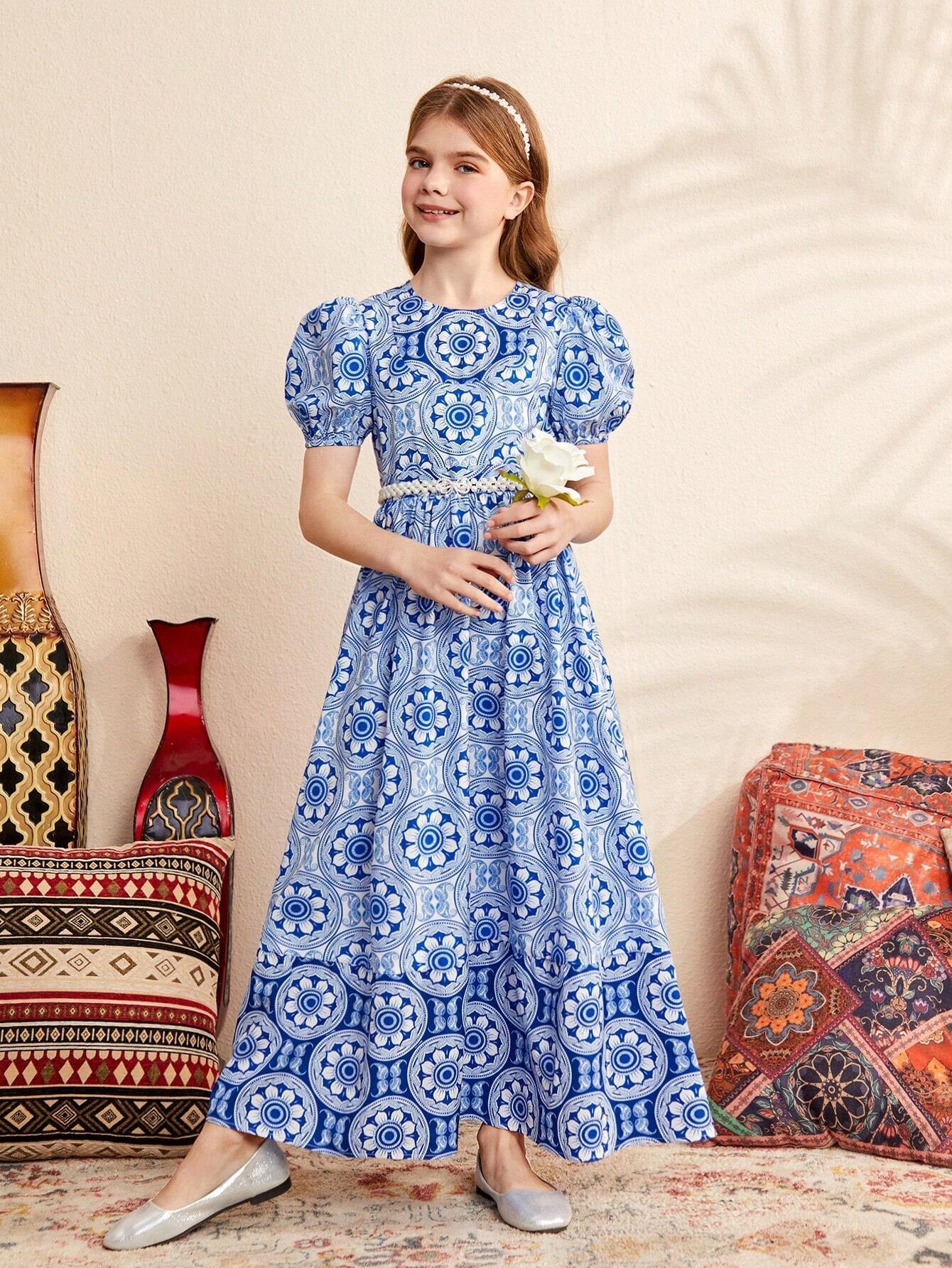 SHEIN فتيات المراهقات الفاتنات فستان باكتروك زهري طويل برقبة دائرية